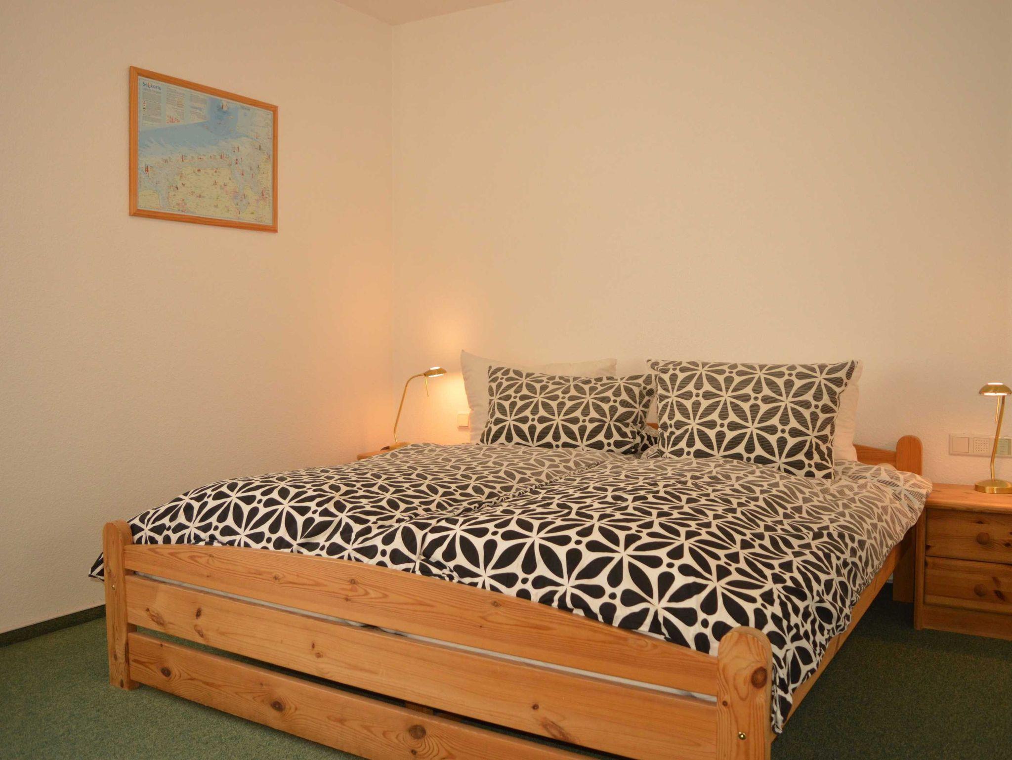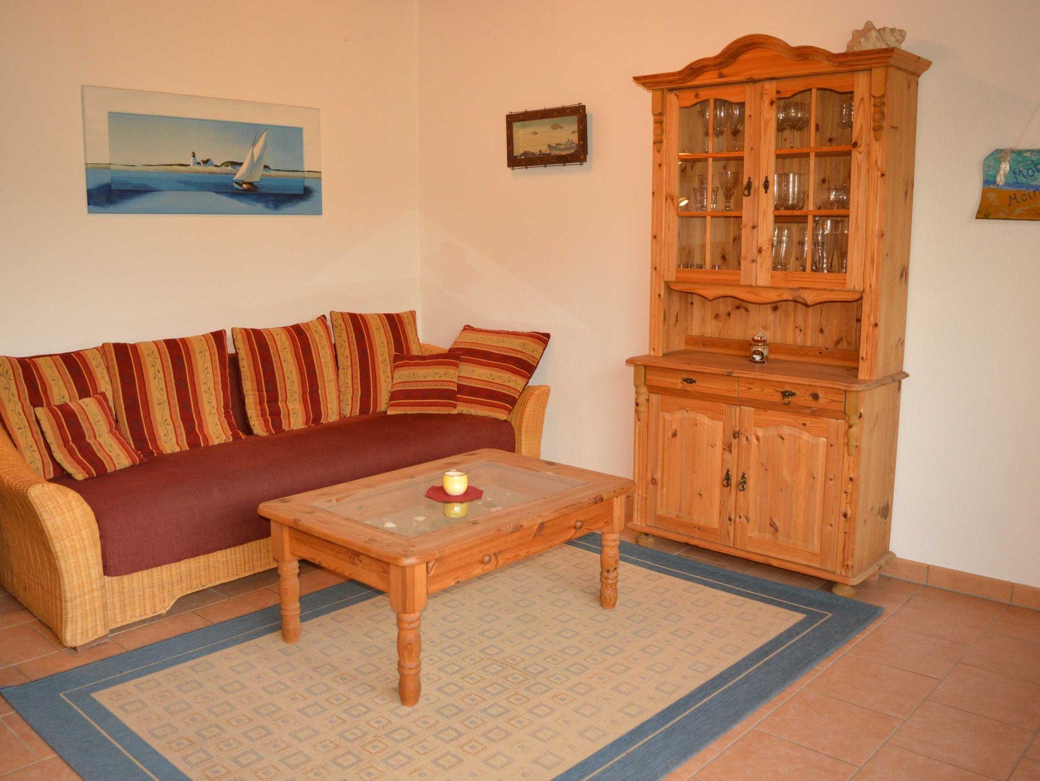 Das ebenerdige Ferienhaus Köhne verfügt über zwei Schlafzimmer, davon ein Schlafzimmer mit Doppelbett und ein Schlafzimmer mit einem Etagenbett sowie einem Einzelbett. Das Wohnzimmer mit offener vollausgestatteter Küche verfügt über einen direkten Zugang auf die Terrasse und den anschließenden Garten. Das Badezimmer verfügt über eine Dusche und ein WC. Zum Haus gehört eine Garage.