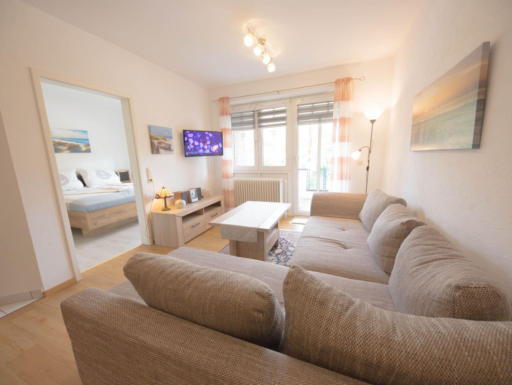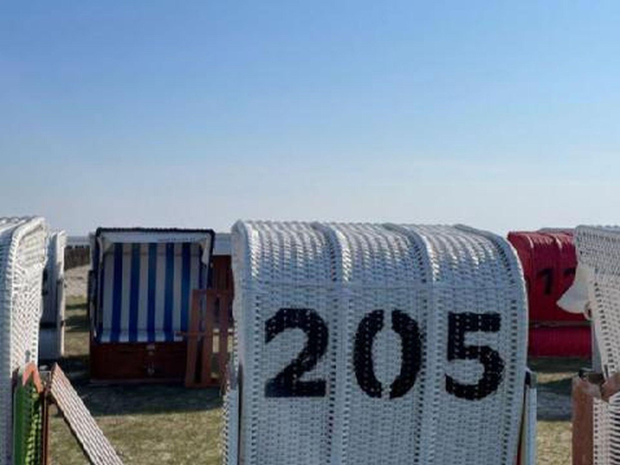 Die Ferienwohnung Boje 9 in Schillig bietet 60 m², Balkon und Strandkorb nahe dem Sandstrand für erholsamen Nordseeurlaub.