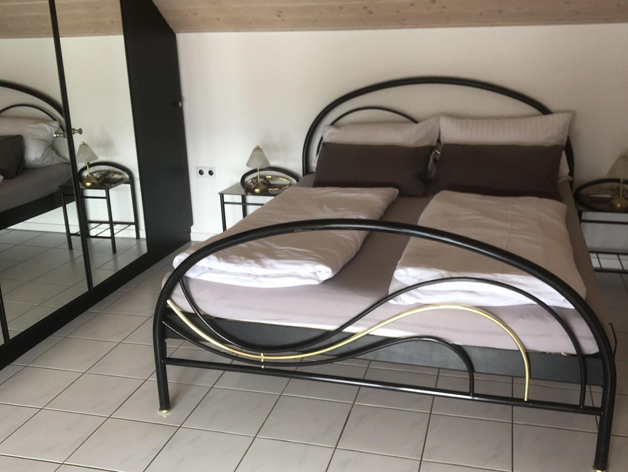 Im Schlafzimmer gibt es ein französisches Bett von 1,60 m Breite (inkl. Bettwäsche).