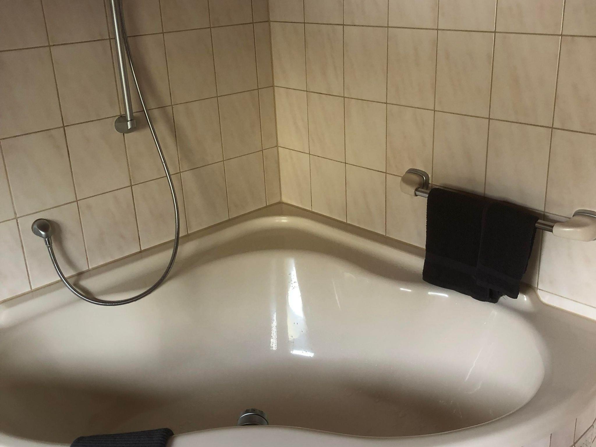 Das Badezimmer hat eine Badewanne mit Duschstange, Urinal, WC und Bidet. Handtücher sind im Mietpreis inbegriffen.