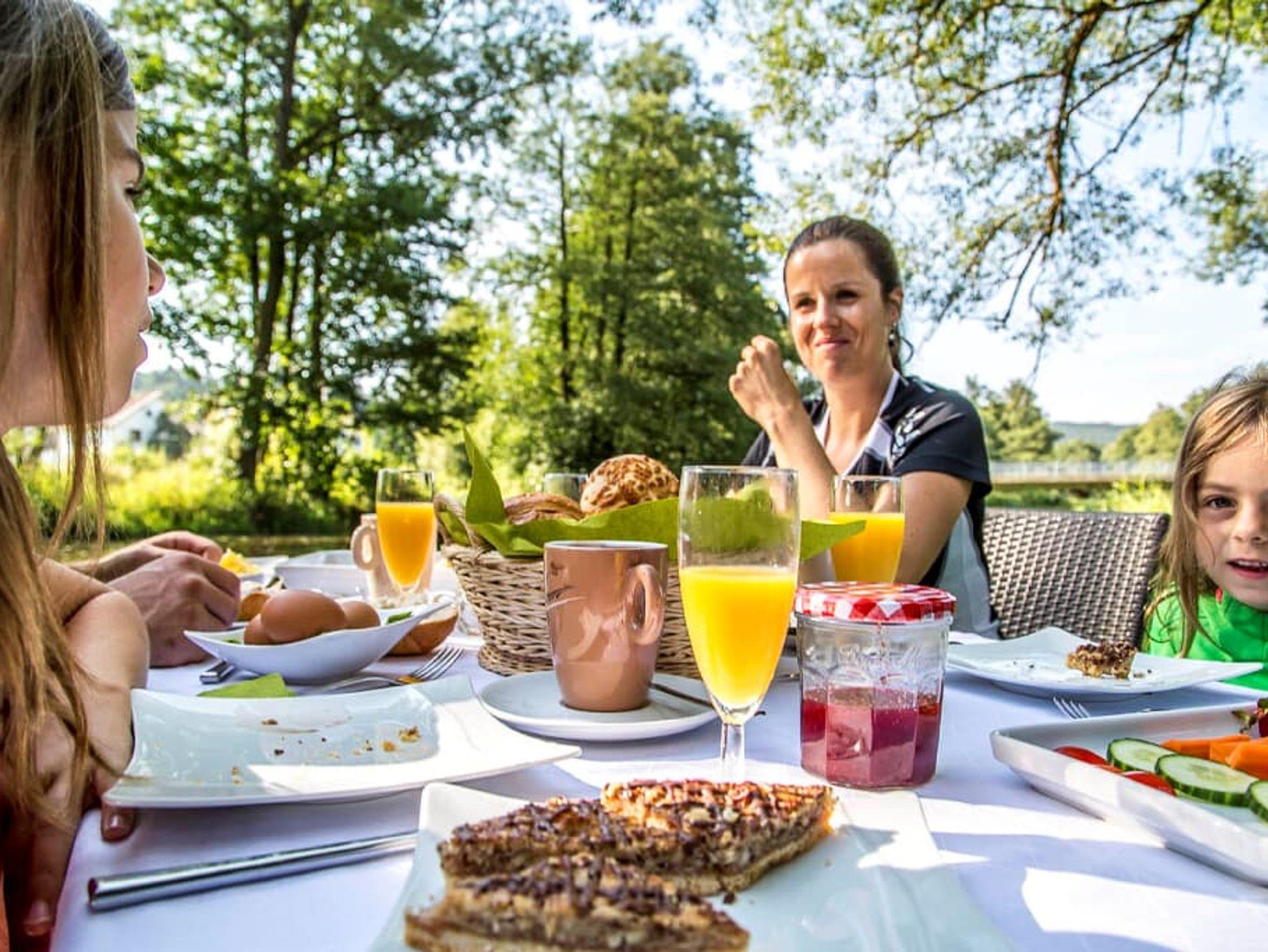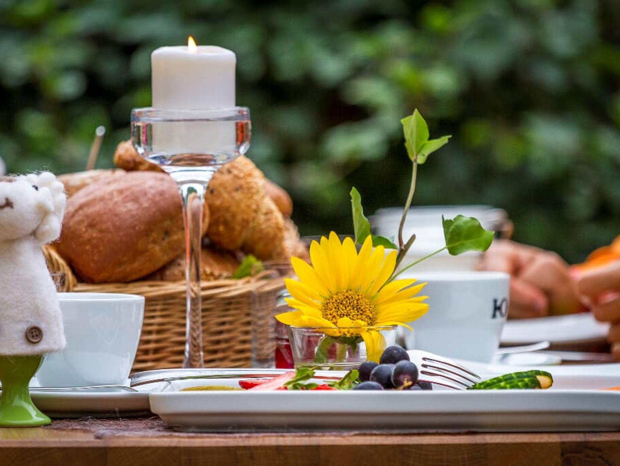 Die Ferienwohnung Blumenwiese mit 65 qm Wohnfläche bietet Platz für 4 Personen. Das gemütliche Wohnzimmer mit Schlafsofa und Flachbild-TV lädt zum Verweilen ein. Die komplett ausgestattete Küche mit Geschirrspüler, Kühlschrank, Gefrierschrank, Herd, Backofen, Mikrowelle, Wasserkocher, Eierkocher, Toaster, und Senseo-Pad-Maschine lässt keine Wünsche offen. Durch den direkten Zugang zum Balkon, können Sie das Frühstück und das Abendessen direkt dort geniessen. Die Ferienwohnung verfügt über 2 Schlafzimmer mit einem großen Doppelbett (200 x 200 cm). Die 2 geräumigen Bäder mit ebenerdiger Dusche, großem Spiegel und großzügigem Regal für Ihre Utensilien, runden das Gesamtbild ab. Zum Reinigen Ihrer Kleidung stehen eine Waschmaschine und Trockner im Haus zur Verfügung. Die Sauna mit Ruheraum im Untergeschoß dürfen Sie gerne nutzen. Vor allem im Sommer können Sie entspannte Grillabende in unserem Garten verbringen.