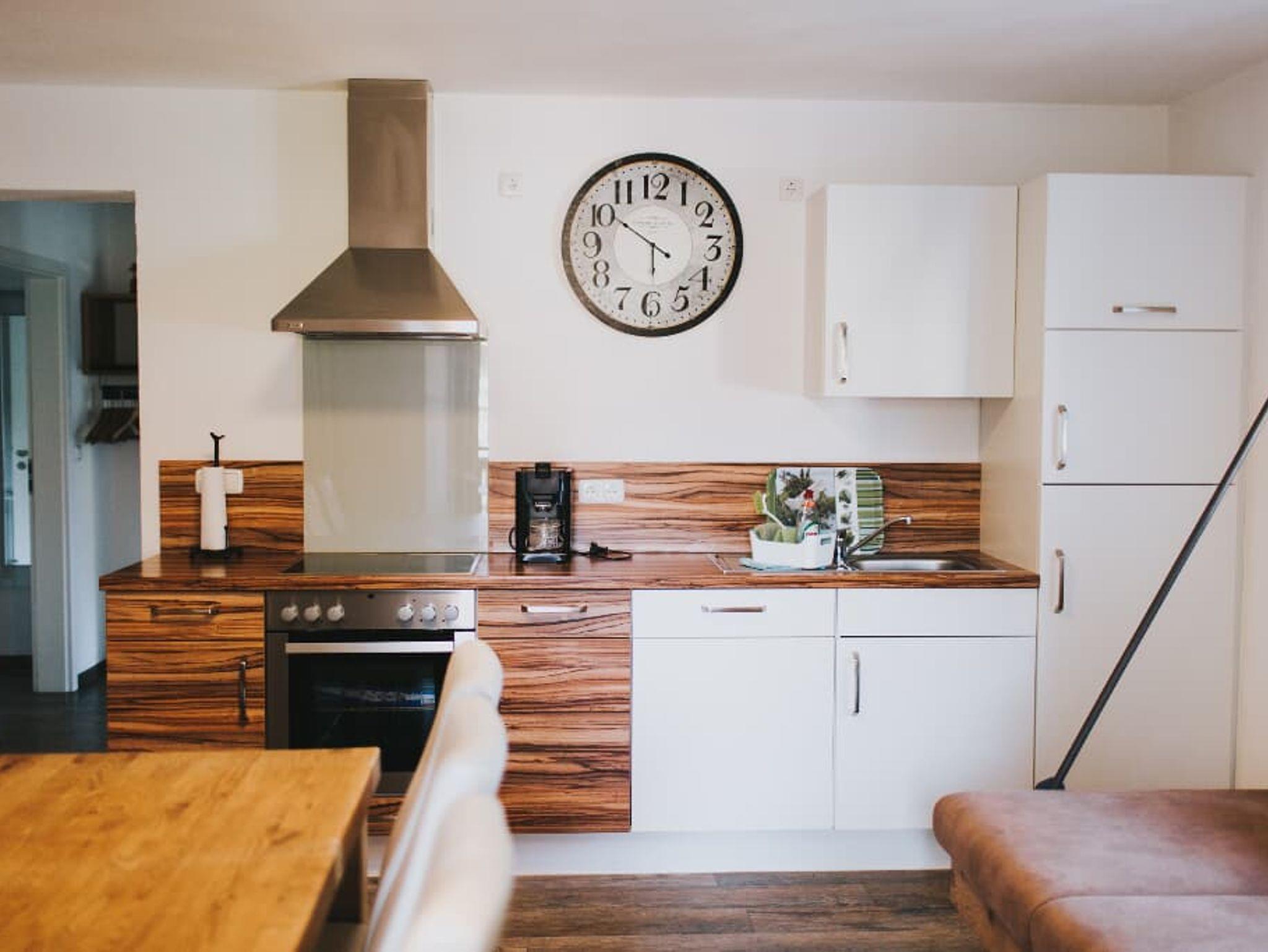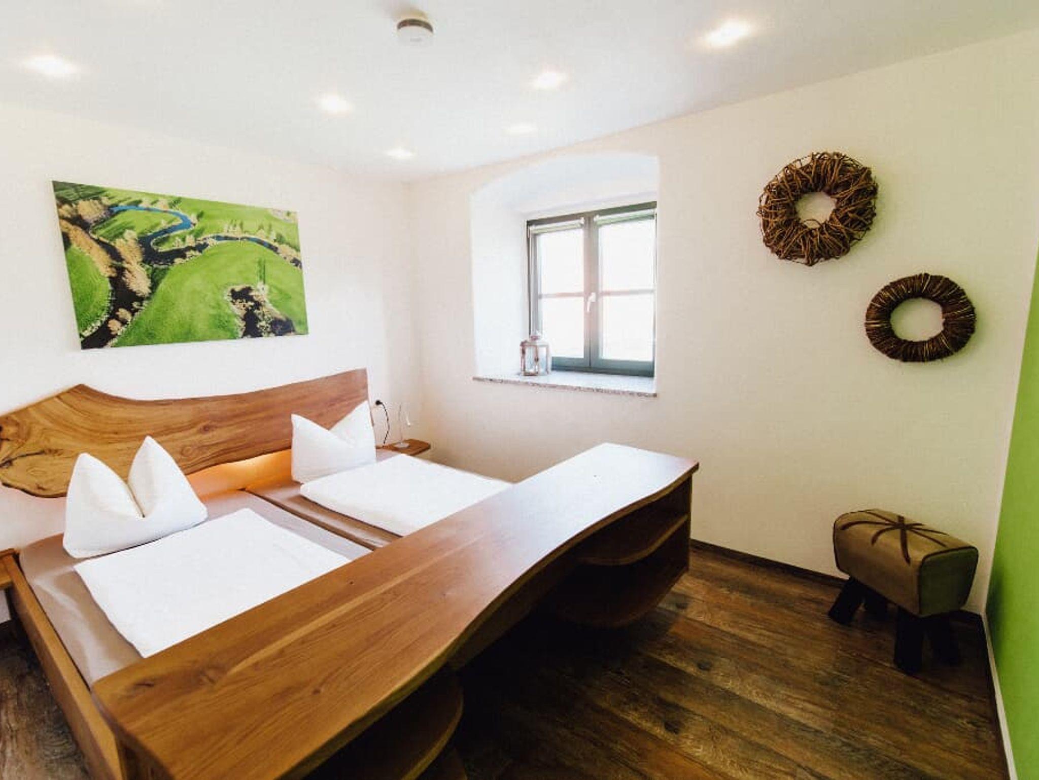 Hochwertig eingerichtet mit heimischen Hölzern und auf das alte Mühlenanwesen abgestimmt. Die teilweise moderne Einrichtung harmonisiert mit dem Charm des alten Bauernhauses.