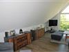 Hier verfügen Sie über einen weiteren, großzügigen Wohnbereich mit großer Sofalandschaft mit TV-Gerät und traumhaftem Blick auf den Strand und die Ostsee.
