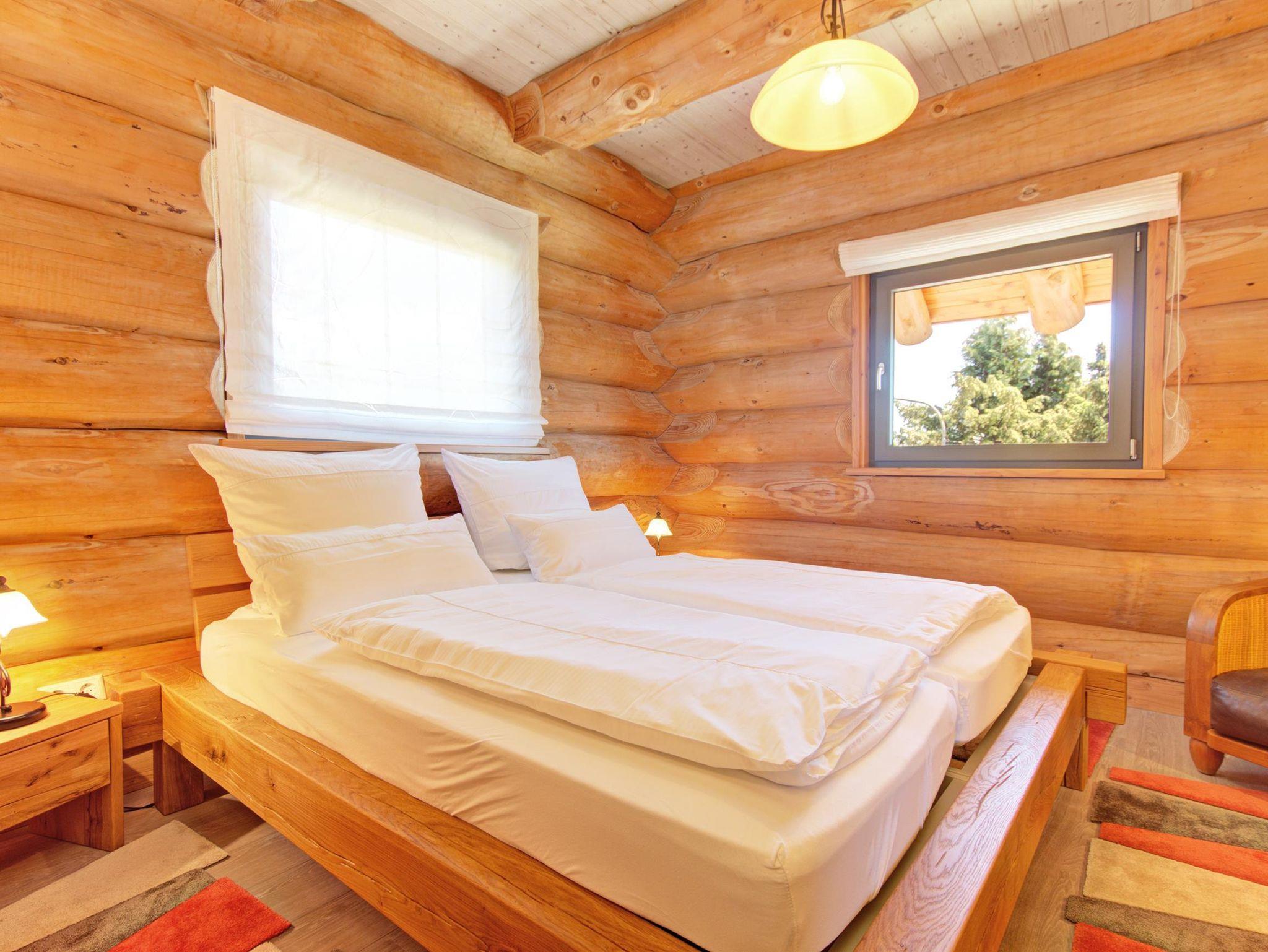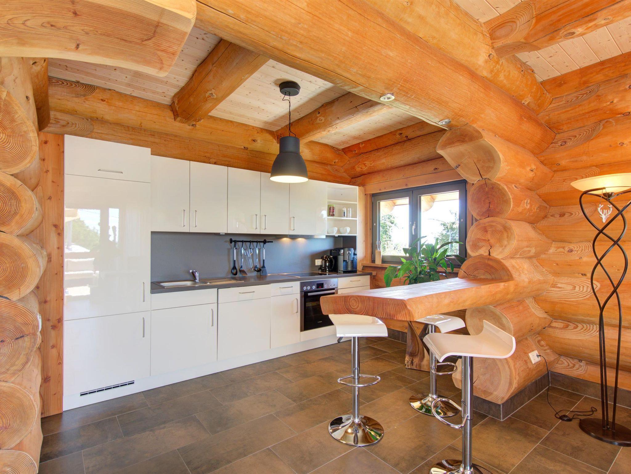 Im Erdgeschoss des Blockhauses bieten wir Ihnen auf 90 qm eine gehobene Ausstattung. Mit der Gestaltung komplett aus Holz, der liebevollen Einrichtung und dem herrlichen Blick ins Grüne fühlt man sich der Natur sehr verbunden. Neben einem Schlafzimmer mit Doppelbett und eigenem Badezimmer finden Sie außerdem eine separate Gästetoilette.