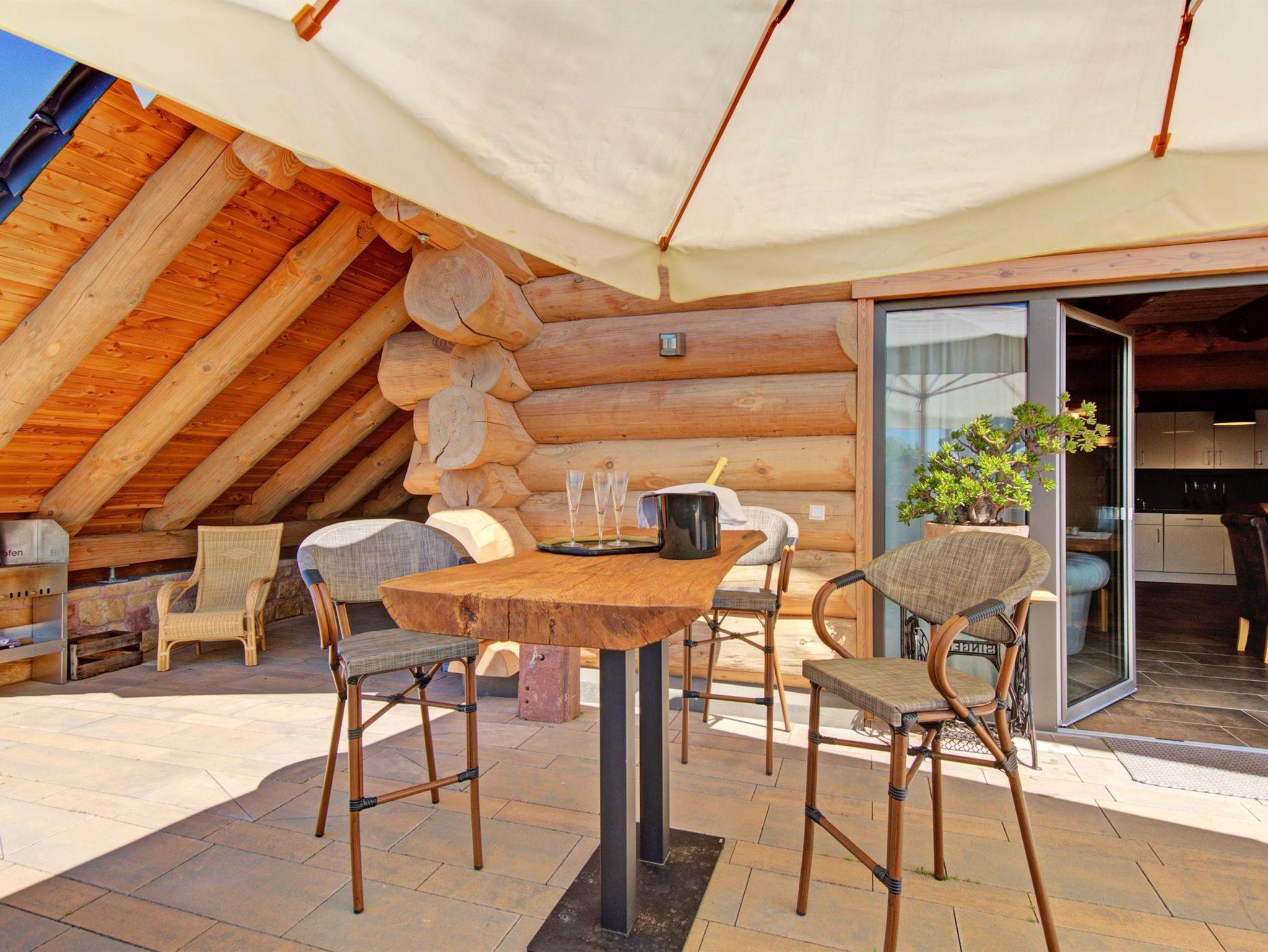 Das Feriendomizil Sonnenberg setzt sichzusammen aus drei unabhängigen Partien, allesamt barrierefrei: Zwei Appartements mit Terrasse im Untergeschosssowie dem Blockhaus, ebenso mit Terrasseund Panoramablick über Weinberge ins Grüne im Erd- und Obergeschoss. DieAusstattung lässt keine Wünsche offen – moderne Technik gepaart mitGemütlichkeit. Durch die Bebauung in den Hang ist es im Sommer angenehm kühl,im Winter sorgt die regelbare Fußbodenheizung für eine Anpassung an dieindividuellen Bedürfnisse.