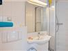 Im Badezimmer finden Sie eine moderne Dusche, Waschbecken, WC, Spiegel sowie einen Haartrockner. Alle Fenster sind mit Sichtschutz versehen, sodass Sie Ihre Privatsphäre jederzeit genießen können. Obwohl kein separates Schlafzimmer vorhanden ist, ermöglichen die zwei Schlafmöglichkeiten einen komfortablen Rückzugsort zum Ausruhen.