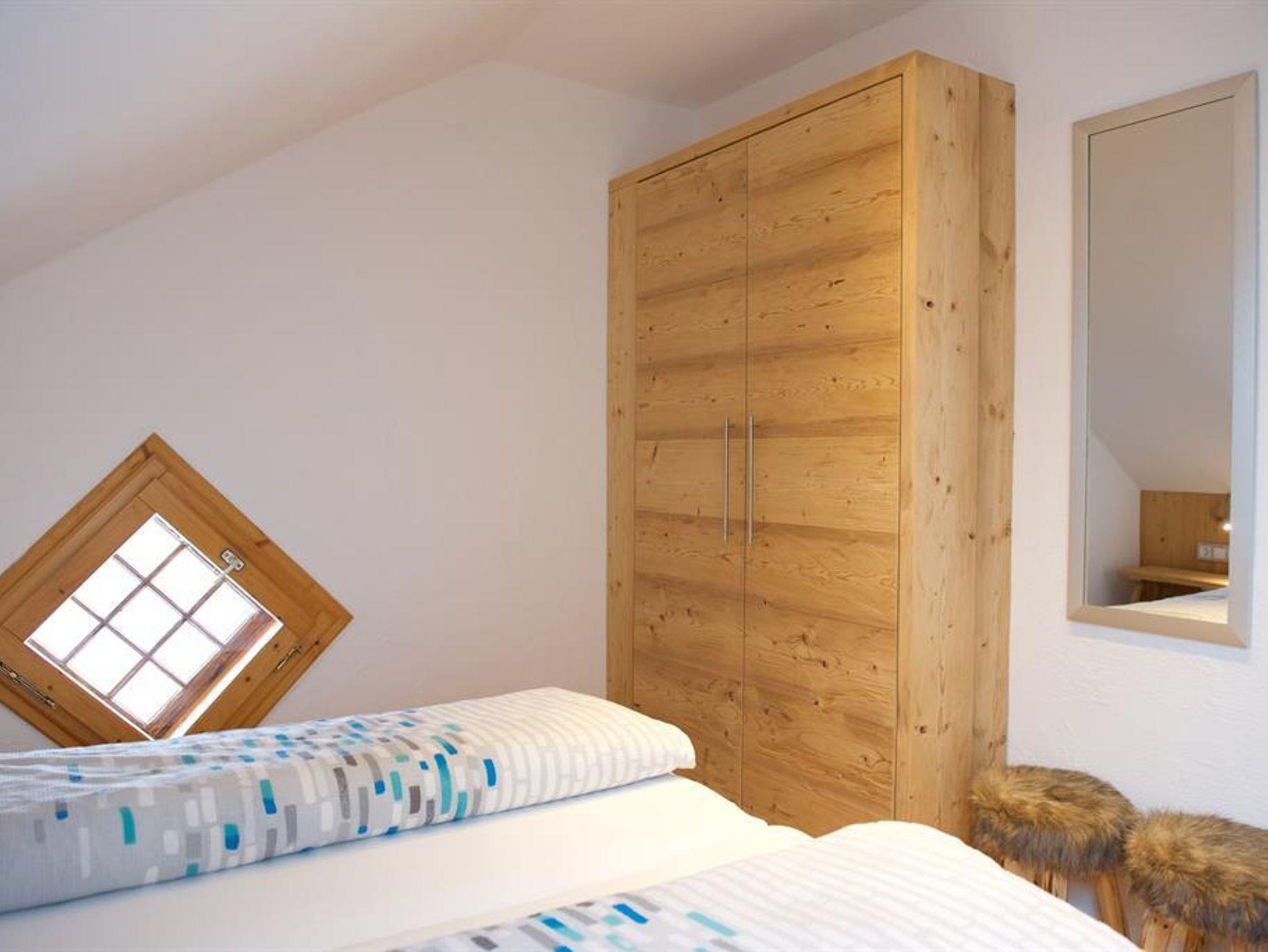 Durch das beliebte Heidifenster im Schlafzimmer mit Doppelbett können Sie den Sonnenaufgang beobachten und das Bergpanorama genießen. Im zweiten Schlafzimmer ist Platz für zwei Einzelbetten.