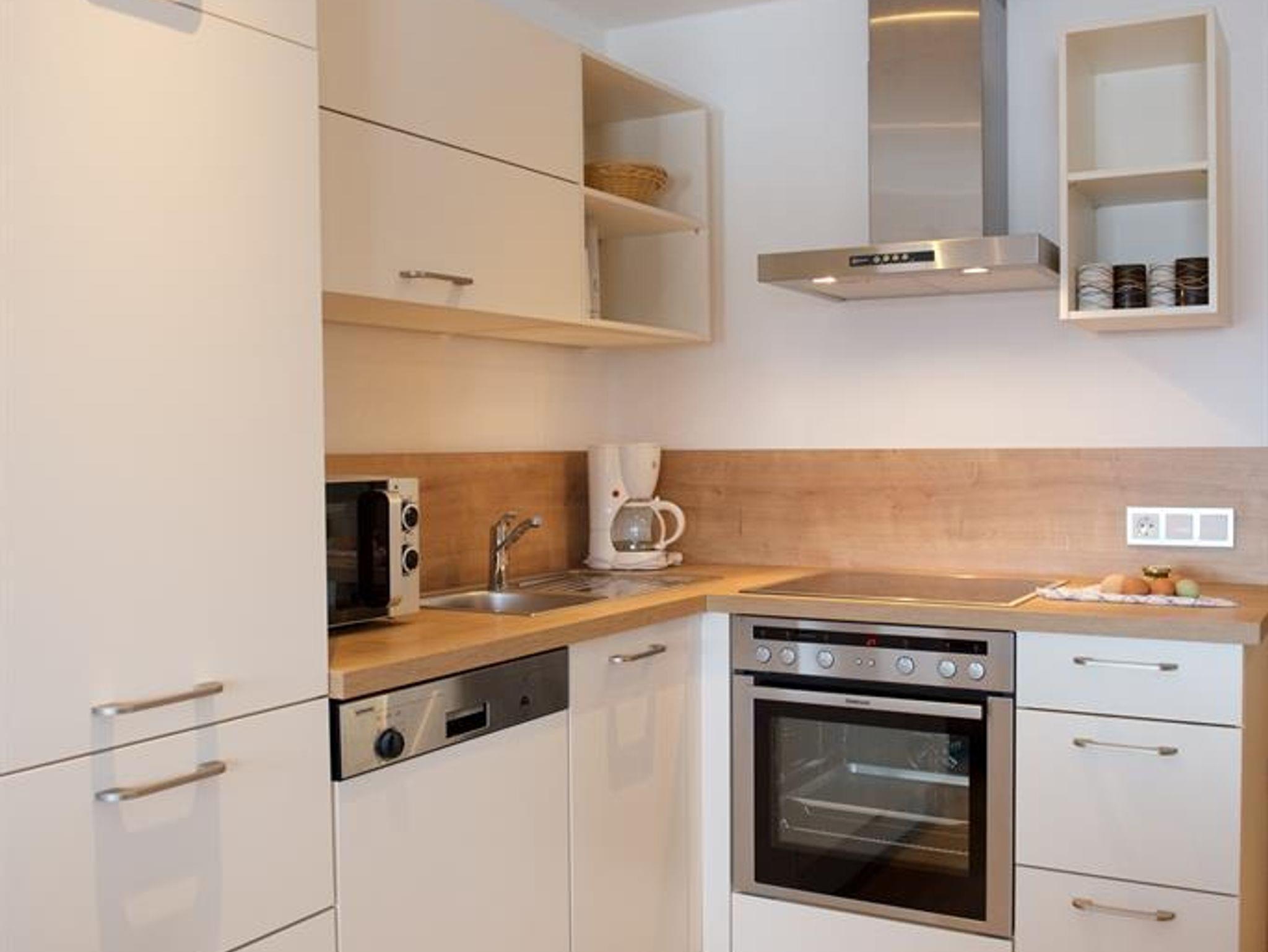 Die geräumige Wohnküche verfügt über eine voll ausgestattete Küche mit einem Essbereich sowie einem gemütlichem Sofa mit FlatTV.