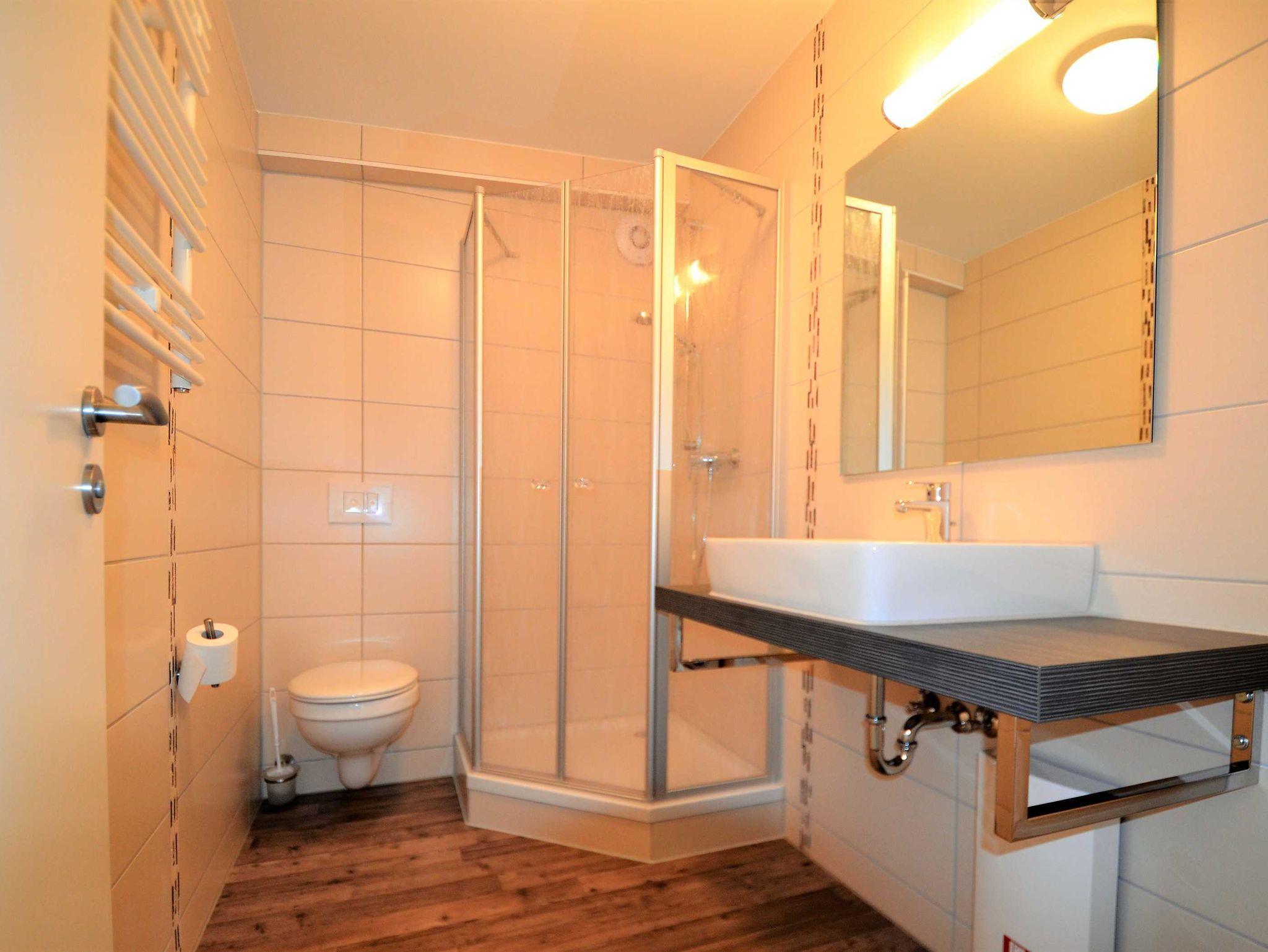 Die Ferienwohnung am Ortsrand von Graal-Müritz liegt im Obergeschoss. Sie bietet Ihnen ein Schlafzimmer mit Doppelbett, einen kombinierten Wohn- und Essbereich sowie ein Badezimmer mit Dusche und WC.