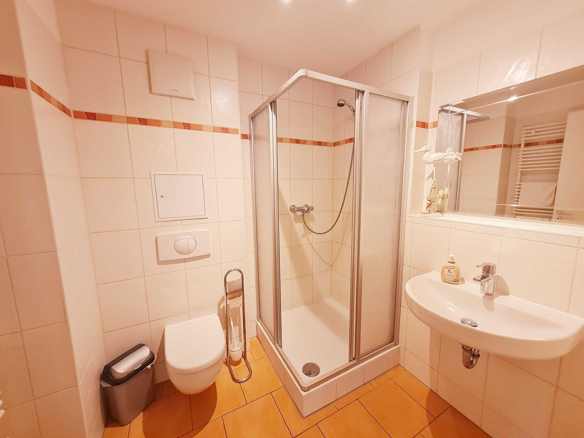• Bad: ohne Fenster, Dusche, Waschbecken, Toilette, Unterschrank WB, Spiegel, Schrank