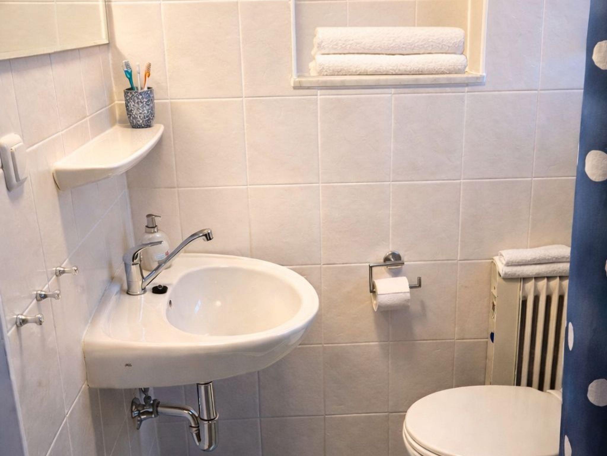 • Badezimmer: Ein zweckmässiges Bad mit Dusche, Waschbecken und WC.