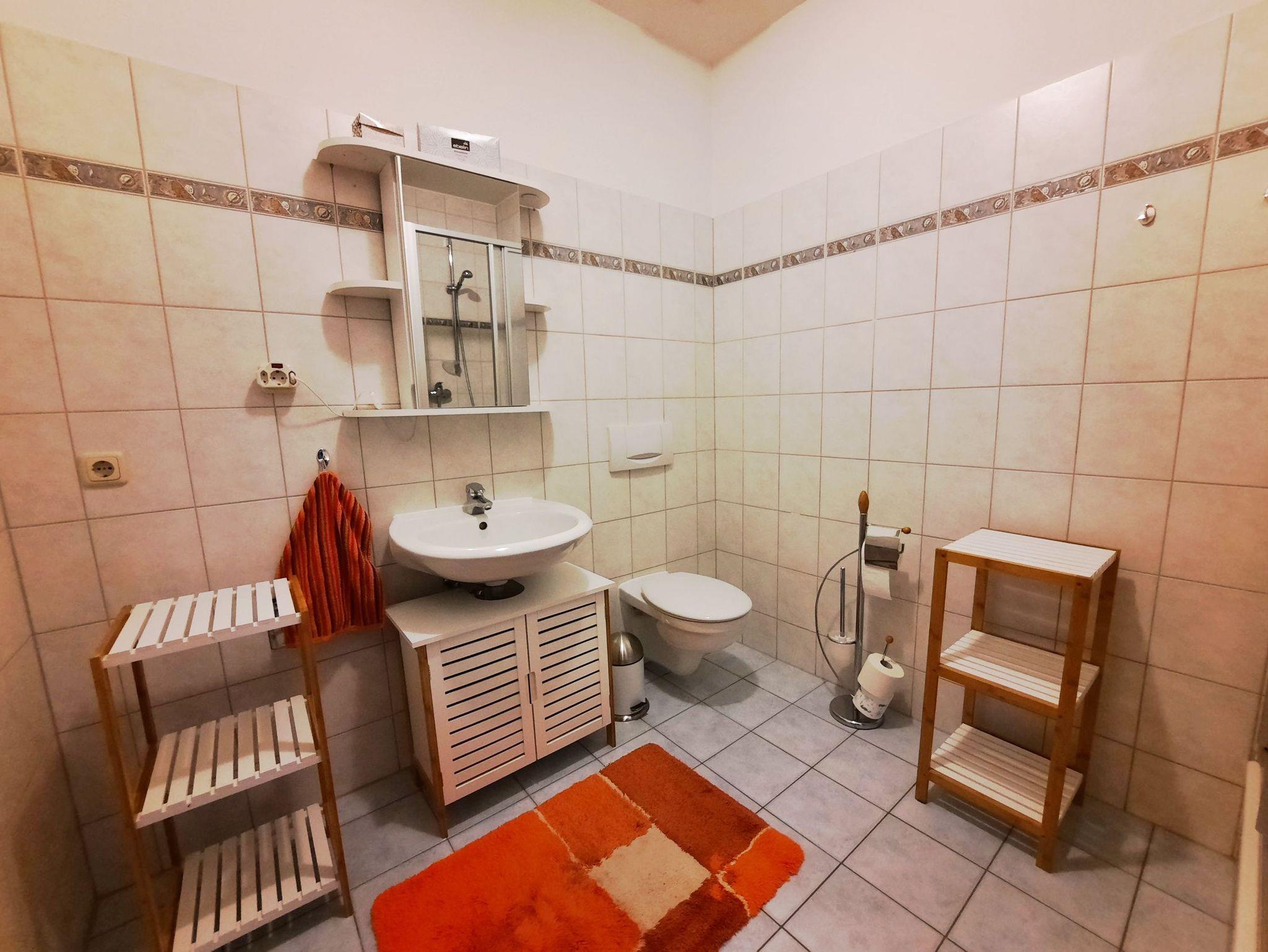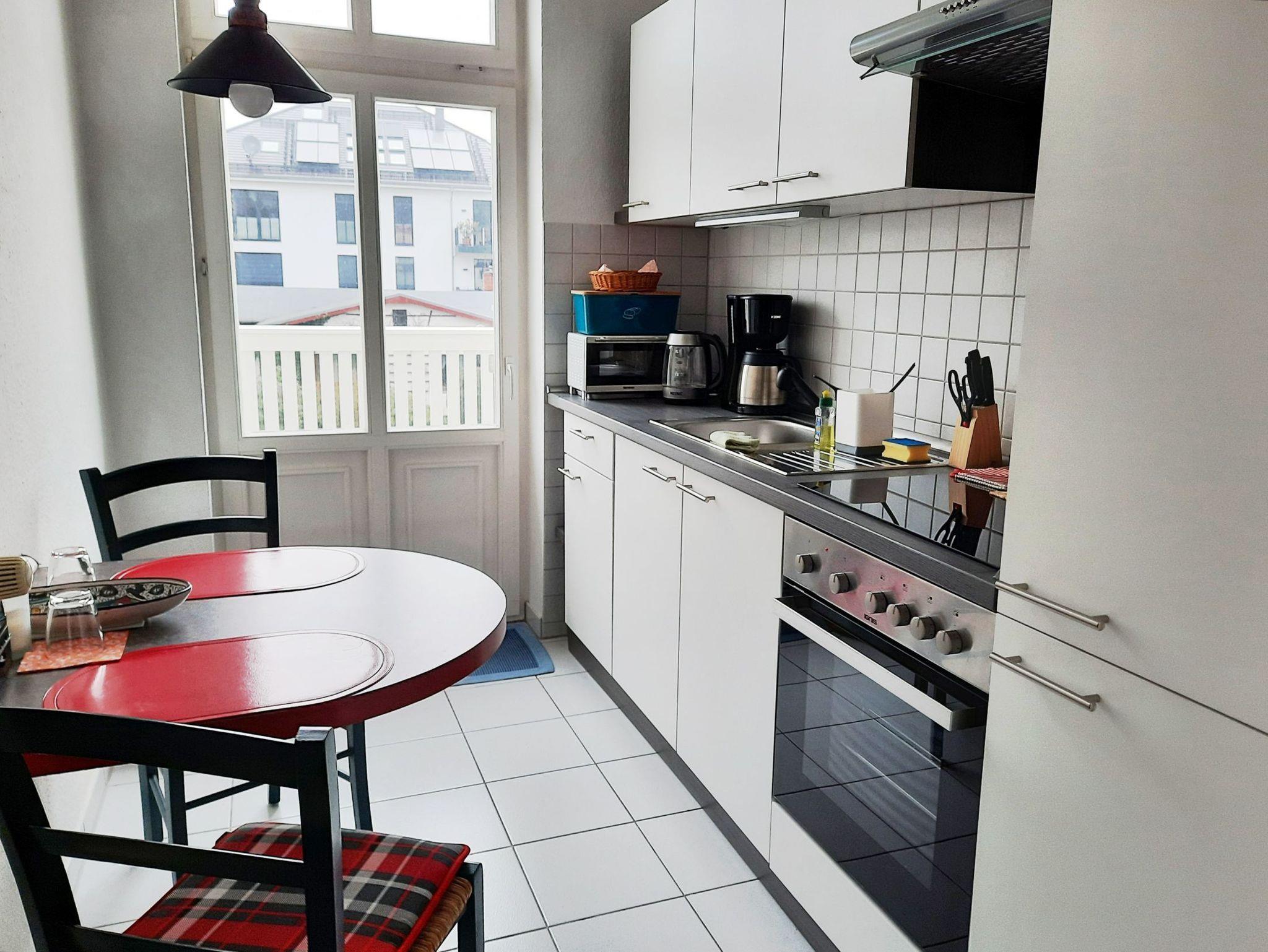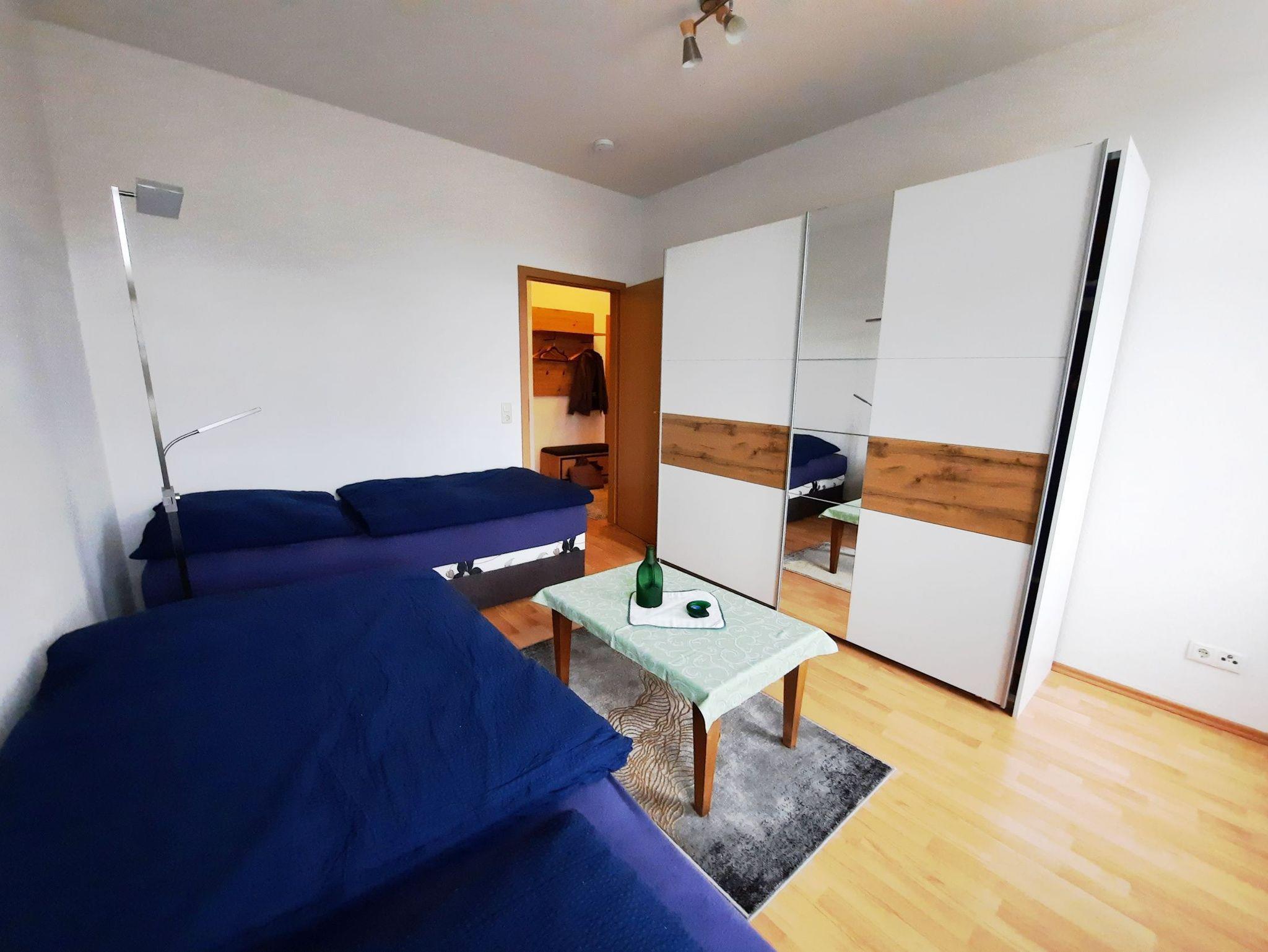 Ihre weitläufige Ferienwohnung besteht aus einem sonnigen Wohnzimmer, einem gemütlichen Schlafzimmer, einem Bad und einer separaten Küche. Im Wohnzimmer befinden sich eine bequeme Couch-Garnitur, ein Flachbild-Fernseher und eine Ess-Ecke mit 4 Stühlen. Vom Wohnzimmer aus haben Sie Zugang zum schönen, langen Süd-Balkon, auf welchem Sie die Sonnenstrahlen genießen können. Ein weiterer Balkon (Nord-Seite) befindet sich am Schlafzimmer, welches mit 2 separaten Betten (90 x 200 cm) und einem Kleiderschrank ausgestattet ist. Die voll ausgestattete Küche mit 4 Ceran-Kochfeldern, einem Backofen, einer Kaffeemaschine und Kühlschrank mit Gefrierfach lädt zu ausgiebigen Koch-Abenden ein. Im kleinen Bad befinden sich ein WC und die Dusche. Zur Wohnung gehört ein Gemeinschafts-Fahrradschuppen und ein PKW-Stellplatz.