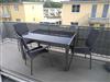Der Balkon ist mit einem Tisch und 4 Stühle, einen Sonnenschirm, einen