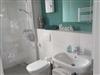 Im Bad gibt hat eine begehbare Dusche, ein Spiegelschrank und einen