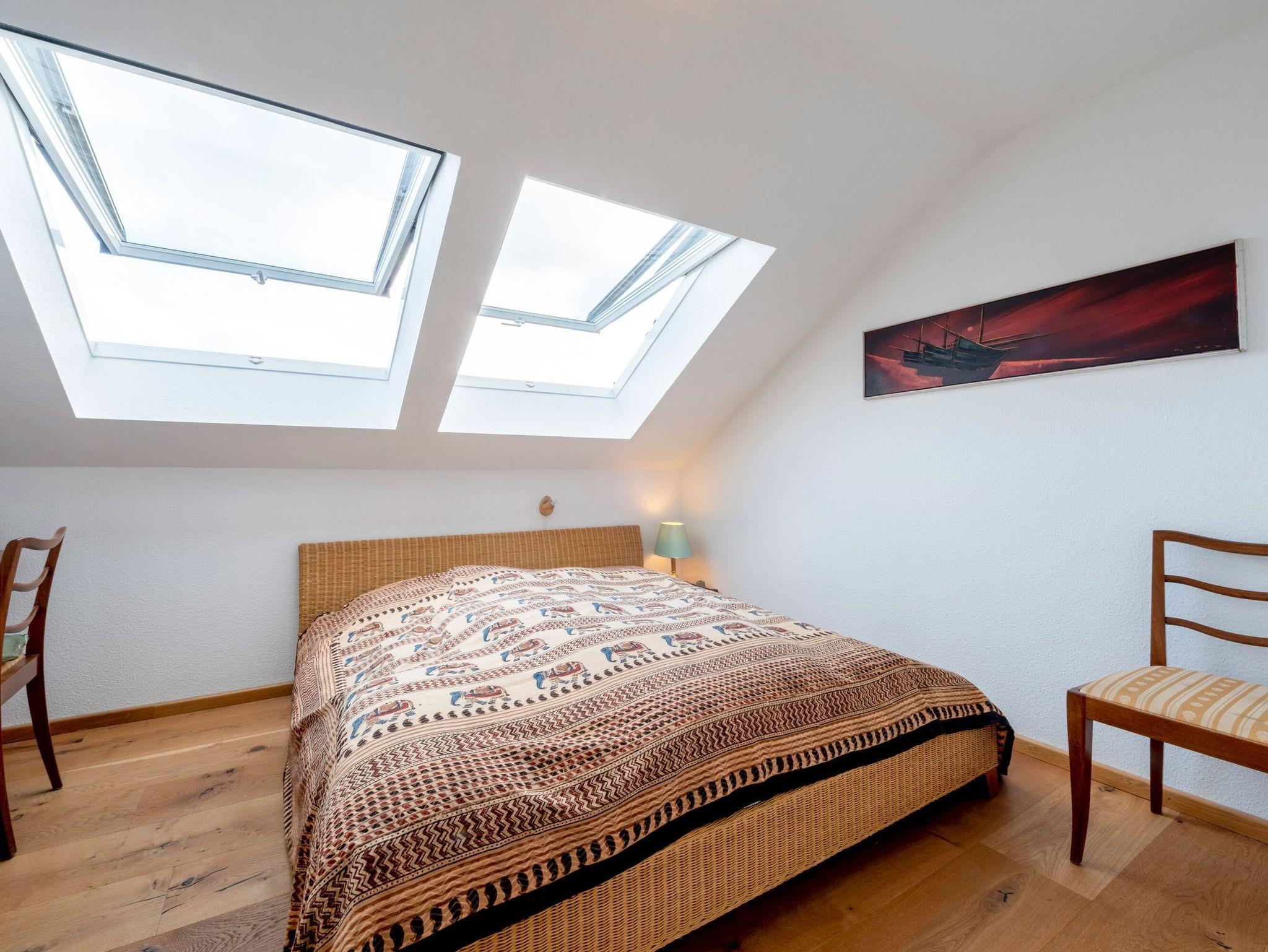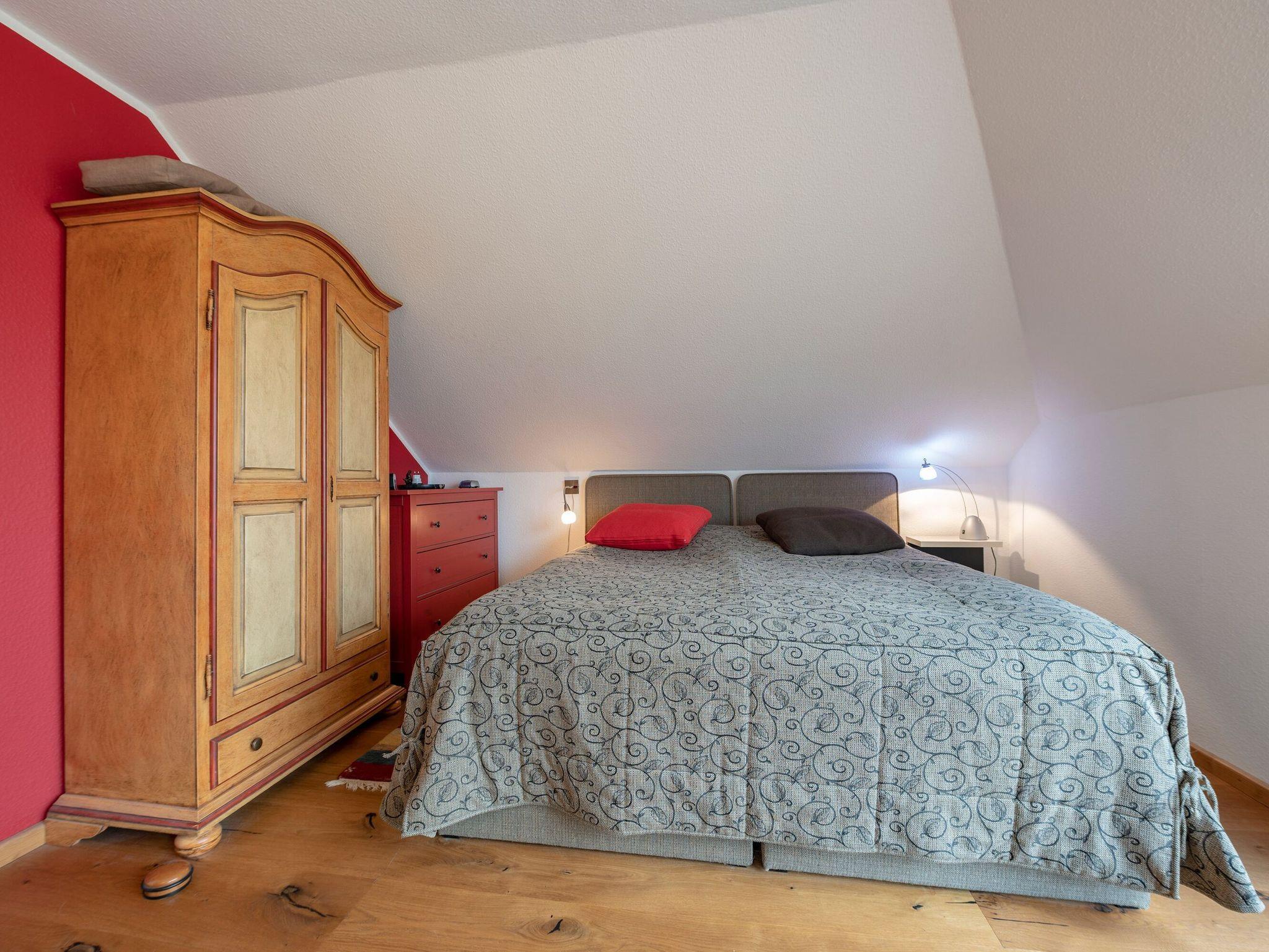 Ein paar Treppenstufen höher überrascht die Meeresmelodie mit einem großzügigen Wohn-/Schlafzimmer mit Meerblick-Panoramafenster und Balkon, einem herrlich bequemen Eichenholz-Doppelbett (180x200cm), einer Ledercouch mit zwei komfortablen Liegesesseln, hellen Eichendielen, einem großen Flatscreen-TV mit kostenfreiem Sky-Empfang sowie BluRay/DVD-Player. Gleich nebenan befinden sich das zweite Schlafzimmer mit einem großem Doppelbett (180x200cm) sowie das zweite Badezimmer mit Dusche/WC sowie Waschmaschine und Trockner. Auch Bügelutensilien sind vorhanden.