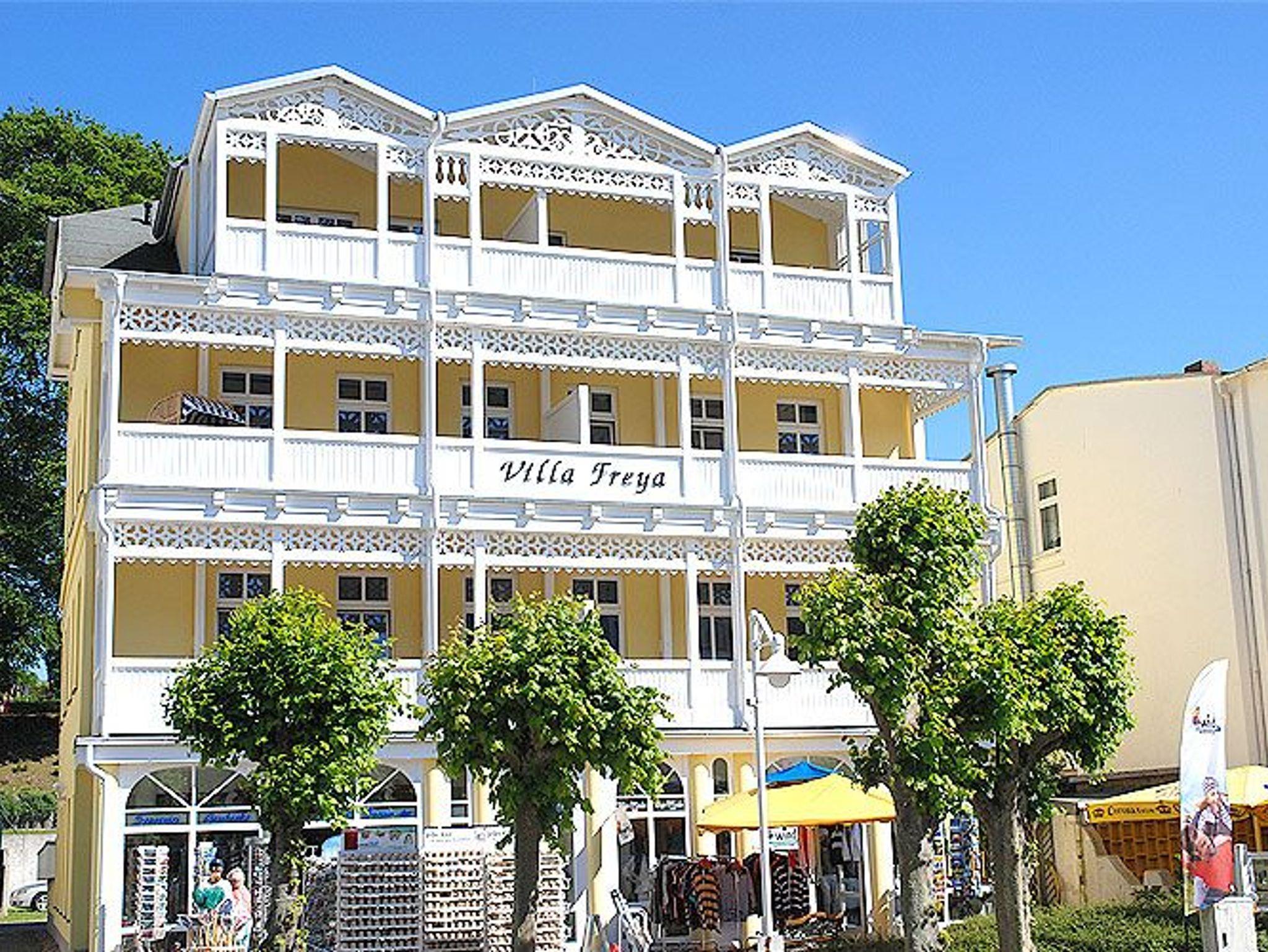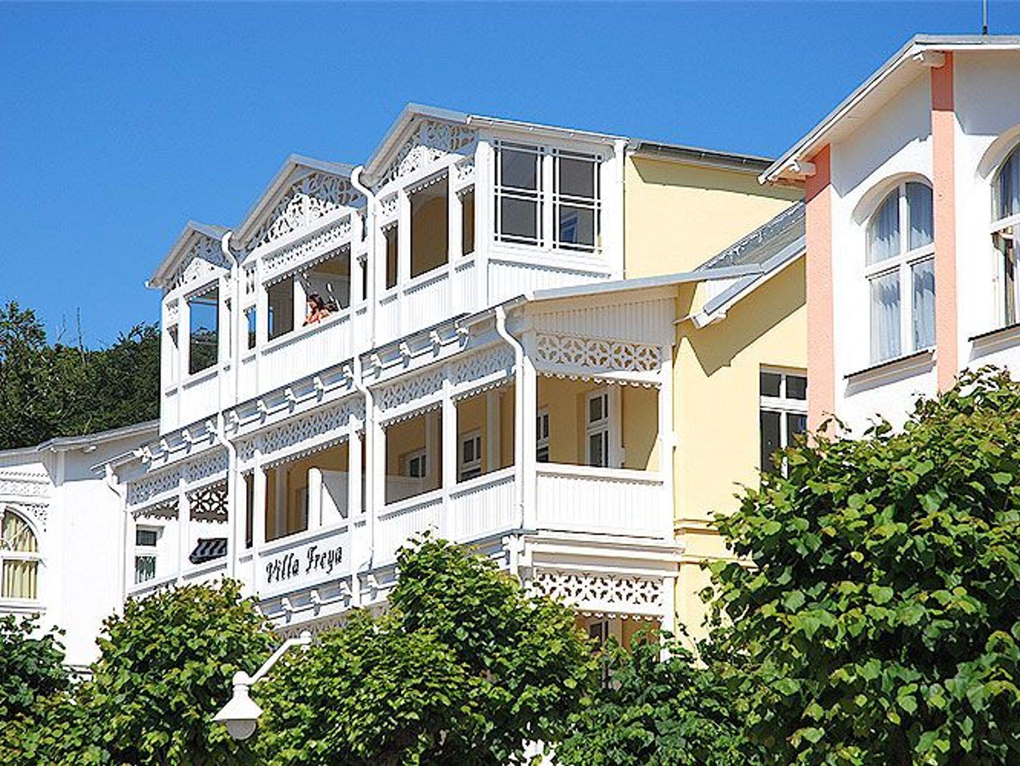 Die wunderschön restaurierte Villa Freya im Stil der Bäderarchitektur ist in der Wilhelmstrasse des Ostseebades Sellin gelegen - ca. 350 m vom Strand und der Seebrücke entfernt. Ihr rund 81 m² großes 3-Raum-Appartement erwartet Sie im dritten Obergeschoss des Hauses und hat gleich zwei möblierte Balkone, einen zur Morgen- und einen zur Abendsonne.