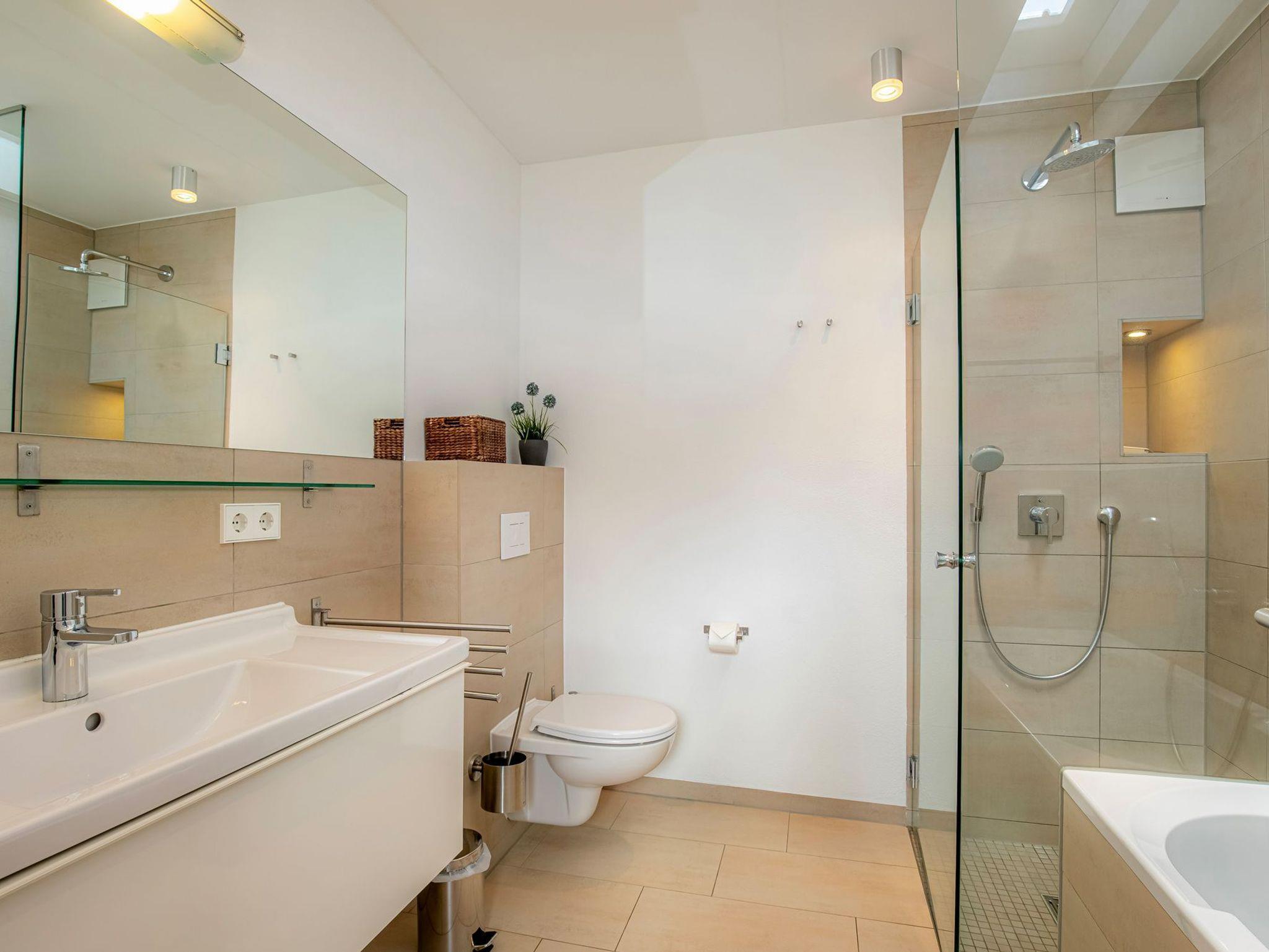Ihr Urlaubsdomizil ist bauhaustypisch klar und modern eingerichtet. Alle Räume sind geschmackvoll und unaufdringlich dekoriert. Die Wände sind hell und in einer harmonischen Abstimmung zum funktionalen Mobiliar gestaltet. Der Bodenbelag besteht durchgängig aus Eichendielen weiß geölt und großen Steinfliesen. Die flächendecken ausgebrachte Fußbodenheizung sorgt im ganzen Haus für angenehme Wärme. Selbstverständlich verfügt Ihr Haus über kostenfreies W-LAN, und auch die übrige technische Ausstattung lässt keine Wünsche offen. Sie sehen, in Ihrem Urlaub in der Meeresperle wird es Ihnen an nichts fehlen. Wir wünschen Ihnen schon jetzt eine recht angenehme Zeit!