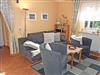 Nach dem Flur betreten Sie den stilvoll eingerichteten Wohnbereich mit bequemen Sitzmöbeln und einem modernen TV-Flachbildschirm. Hier steht auch ein Esstisch mit Stühlen. Daran an schließt sich die Küchenzeile mit Ceranherd, Mikrowelle, Abzugshaube, Wasserkocher, Toaster und Kaffeemaschine an. Für behagliche Wärme in der kälteren Jahreszeit sorgt ein Kamin im Wohnbereich.