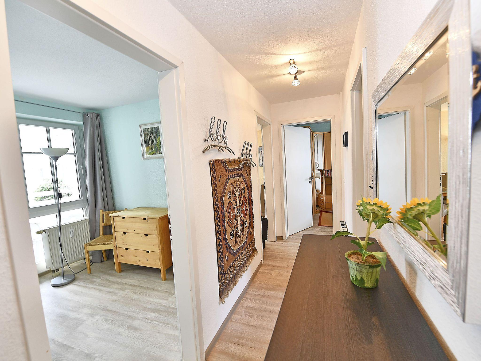 Das schöne 3-Raum-Appartement ist ca. 60 m² groß und befindet sich im 1. Obergeschoss des „Haus Baabe“. Die Wohnung verfügt über ein schönes Wohnzimmer mit Sitzecke, TV, Stereoanlage und einem großen Esstisch für 4 Personen.