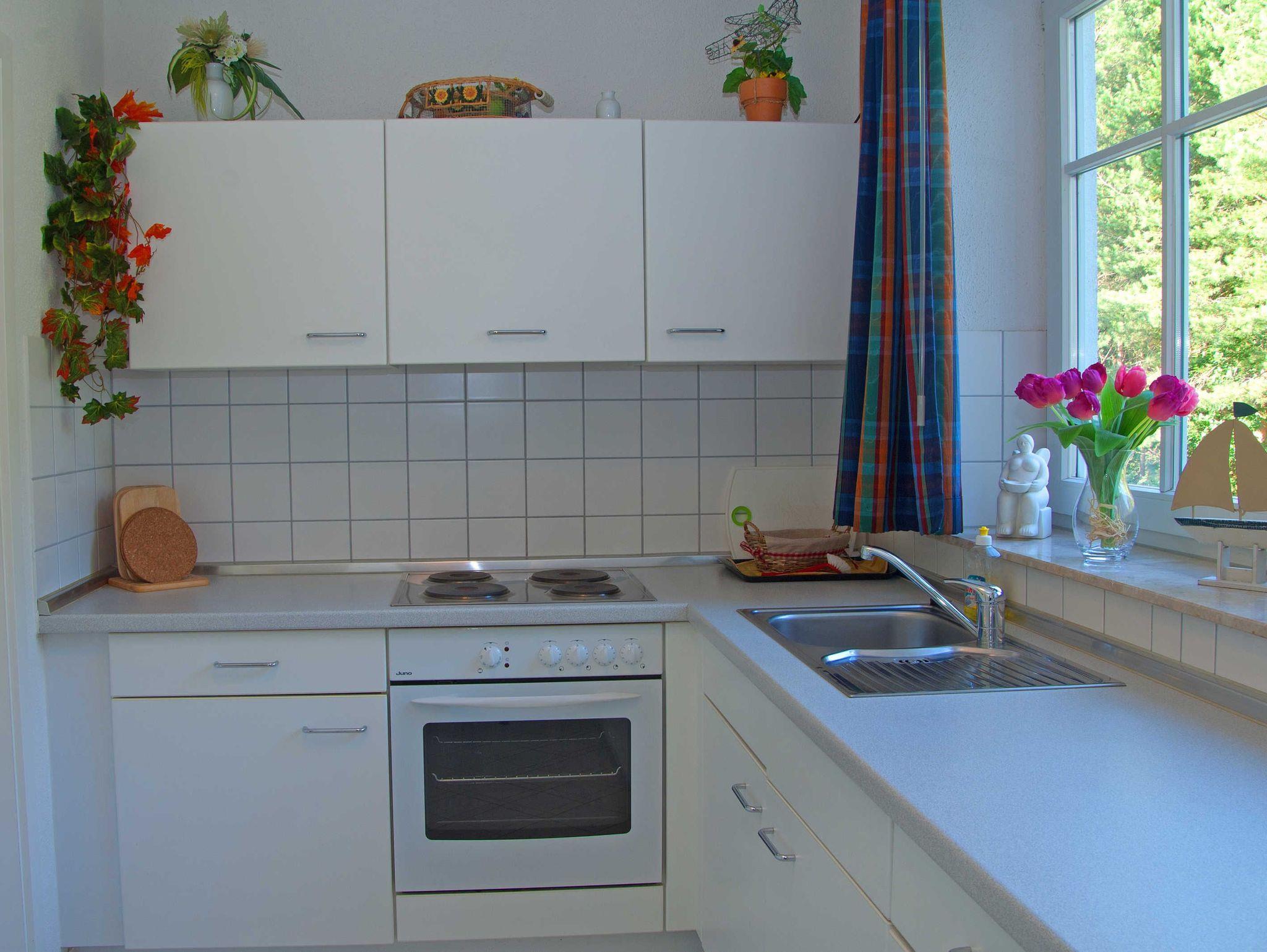 Die moderne separate Küche ist mit einem, Backofen, Wasserkocher, Kaffeemaschine, Toaster und Kühlschrank mit Gefrierfach ausgestattet.