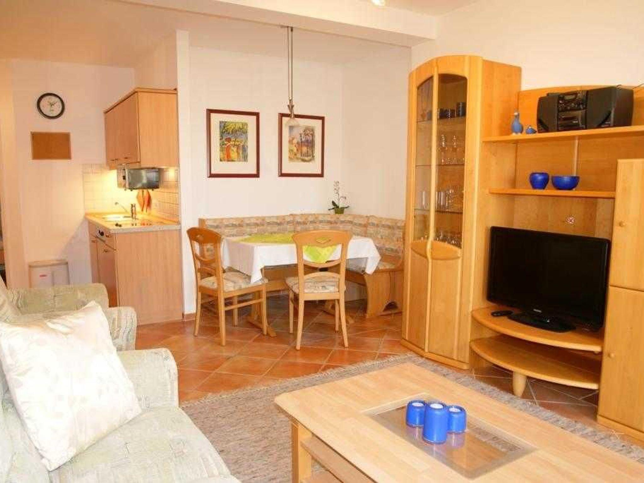 • Wohnzimmer mit Couch und Esstisch für 4 Personen