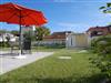 Speisen können Sie wahlweise am großen Esstisch drinnen oder - wenn das Wetter es zulässt - gern auch draußen auf der überdachten Terrasse. Diese ist dank Südausrichtung angenehm sonnig und bietet als Extra sogar noch eine fast ca. 60 m² große Freifläche zum Spielen und Relaxen.