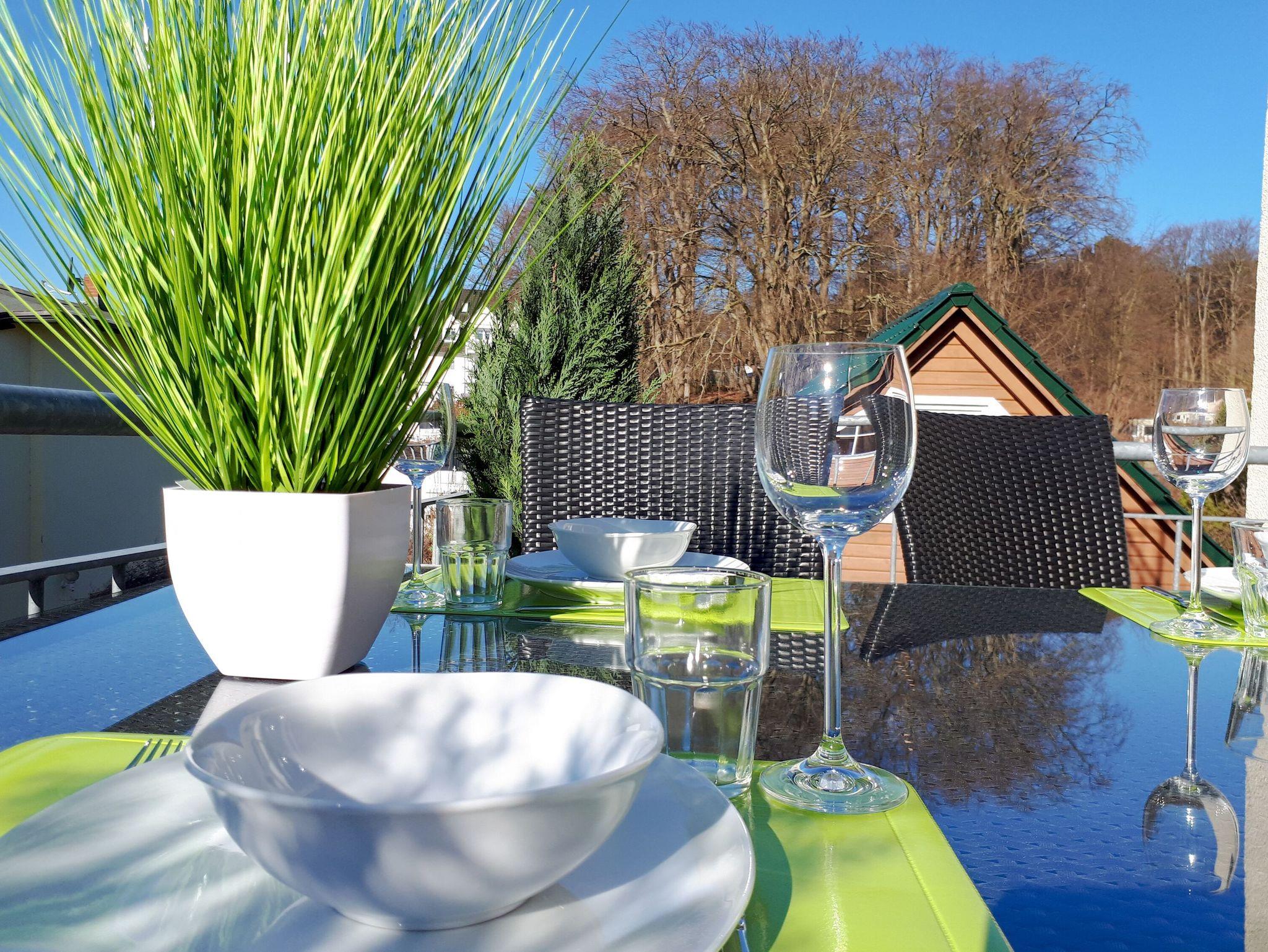 Das ca. 70 m² große und geschmackvoll eingerichtete 3-Raum-Appartement befindet sich im 1. Obergeschoss des Hauses und hat einen großen möblierten Balkon zur Südseite.