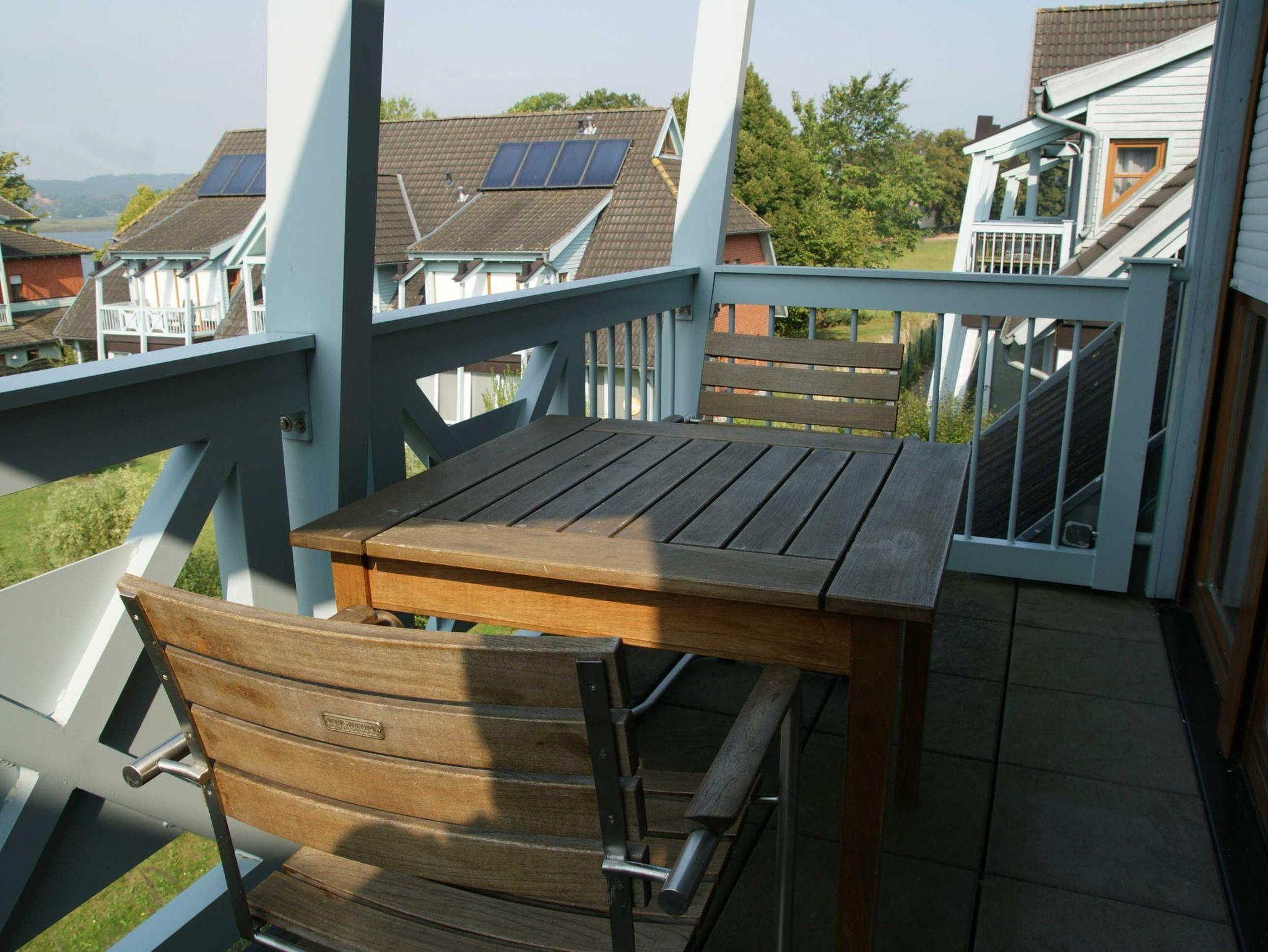 • sonniger Balkon mit Seeblick und Sitzmöglichkeiten
