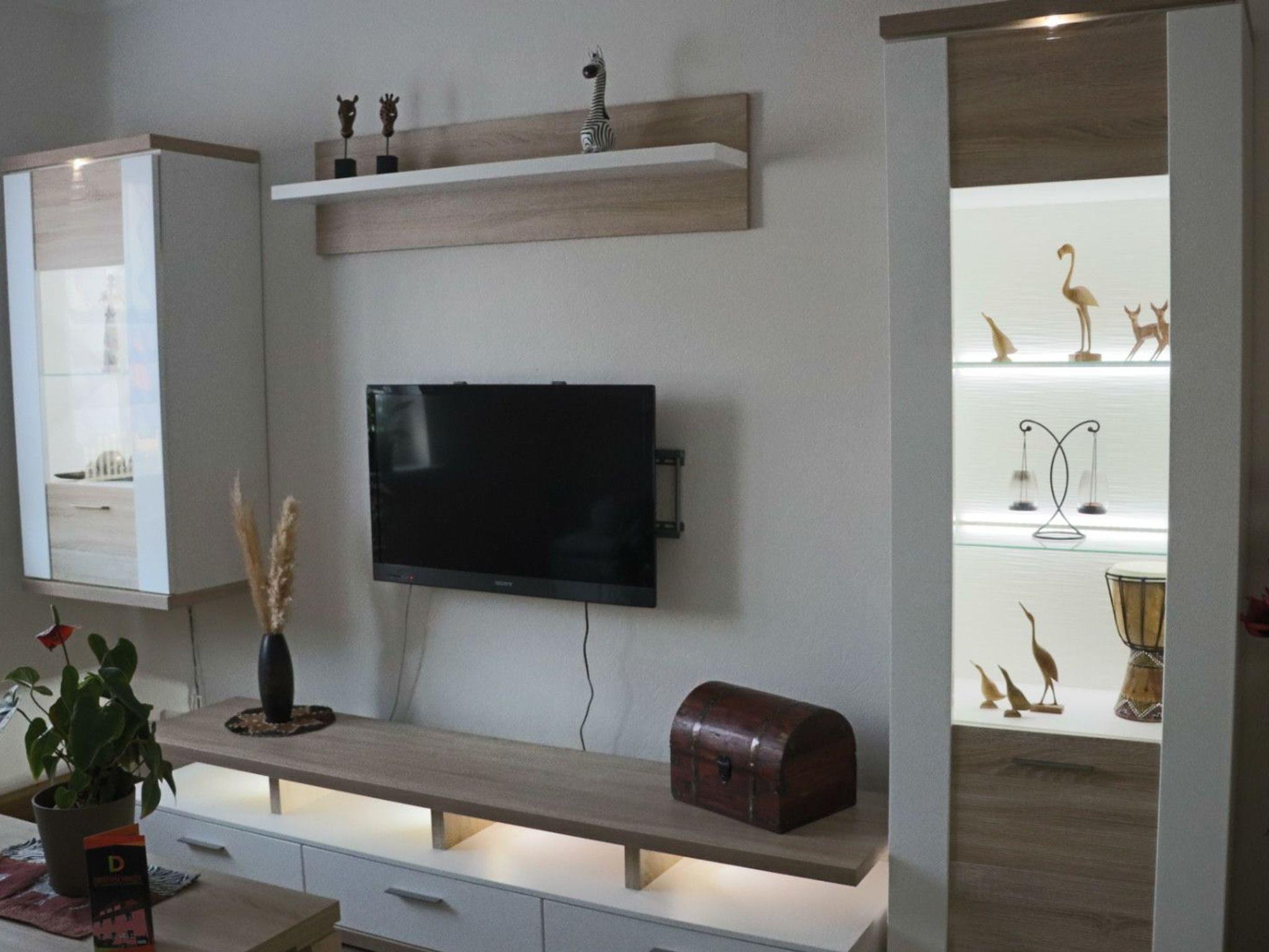 Sie finden einen Wohnraum mit Schlafcouch und Flachbildfernseher, einen Schlafraum mit einem Doppelbett, sowie eine komplett ausgestattete Küche mit Spülmaschine vor. Das Tageslichtbad ist mit einer Badewanne ausgestattet.