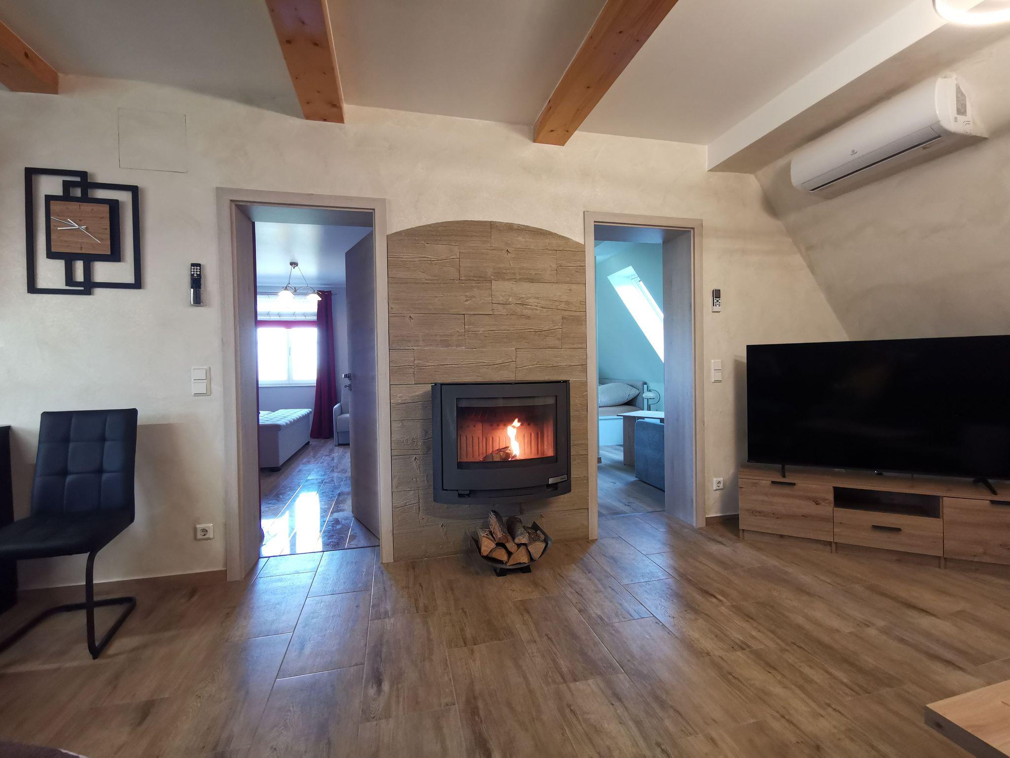 Für eine optimale Raumtemperatur ist eine Klimaanlage vorhanden. Weiterhin gibt es eine Fußbodenheizung und ein Kamin.
