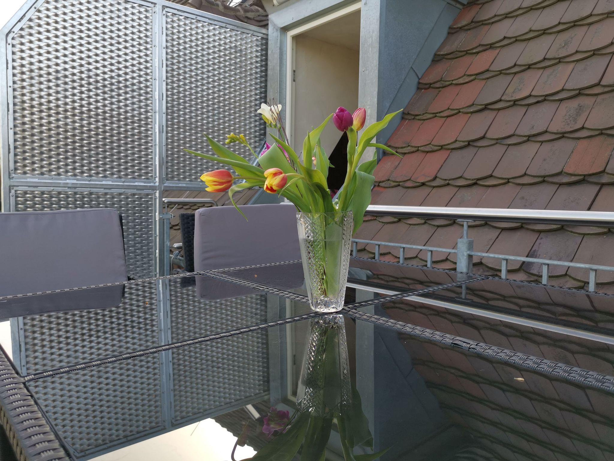 Zur Ferienwohnung gelangt man über eine Außentreppe oder bequem mit dem Aufzug.