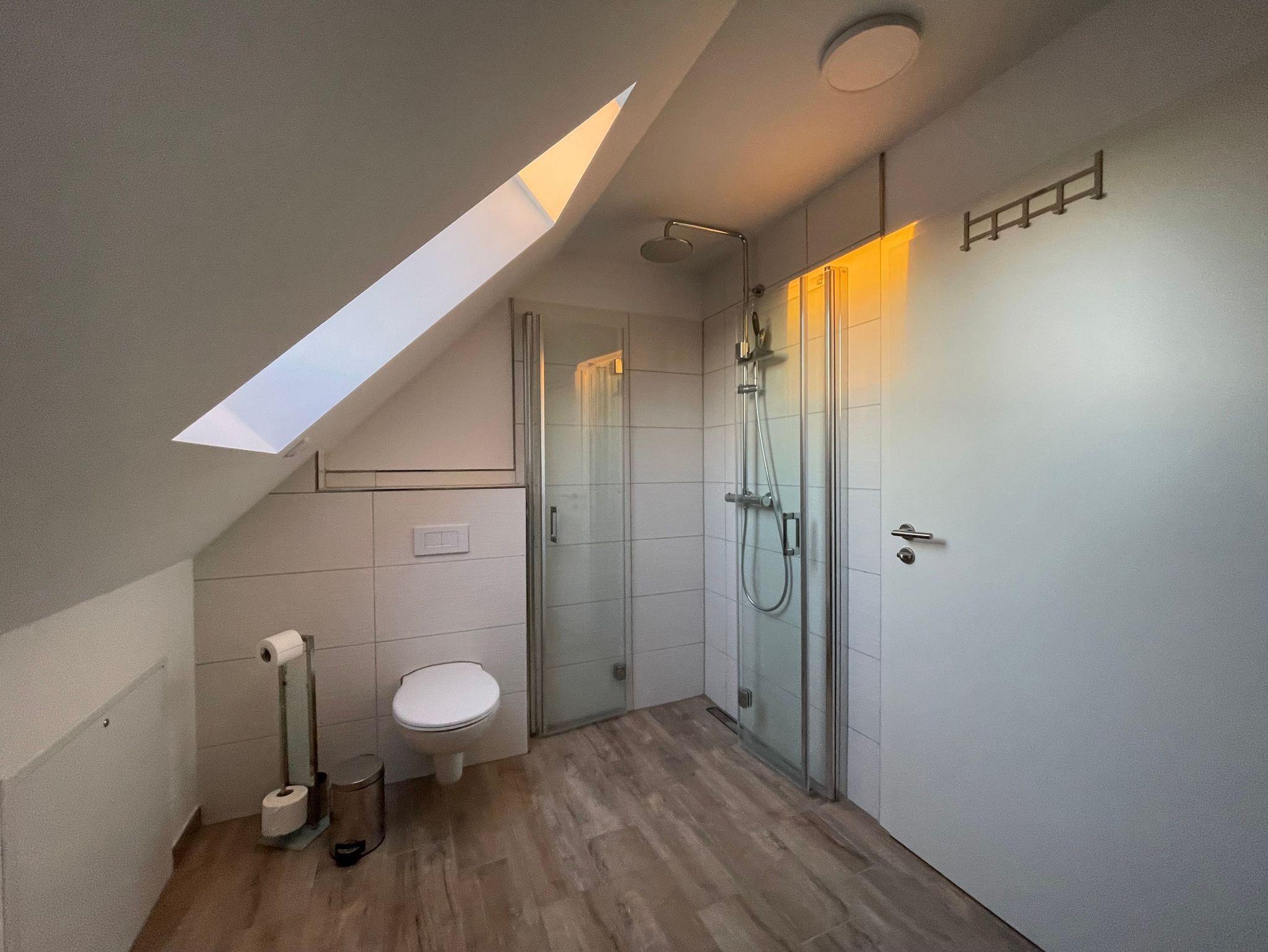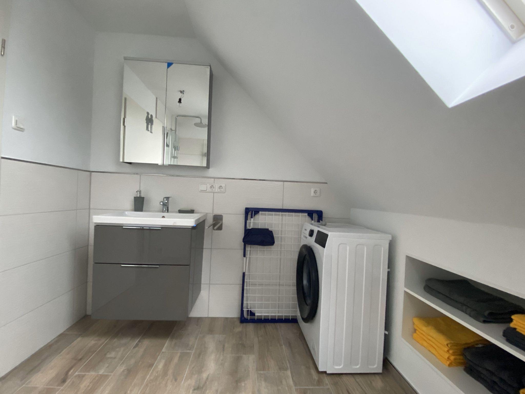 Das Badezimmer ist mit einer bodenebener Regendusche (1qm) und vielen Annehmlichkeiten ausgestattet. In der Waschmaschine bekommt man auch die schmutzigsten Kindersachen wieder sauber.