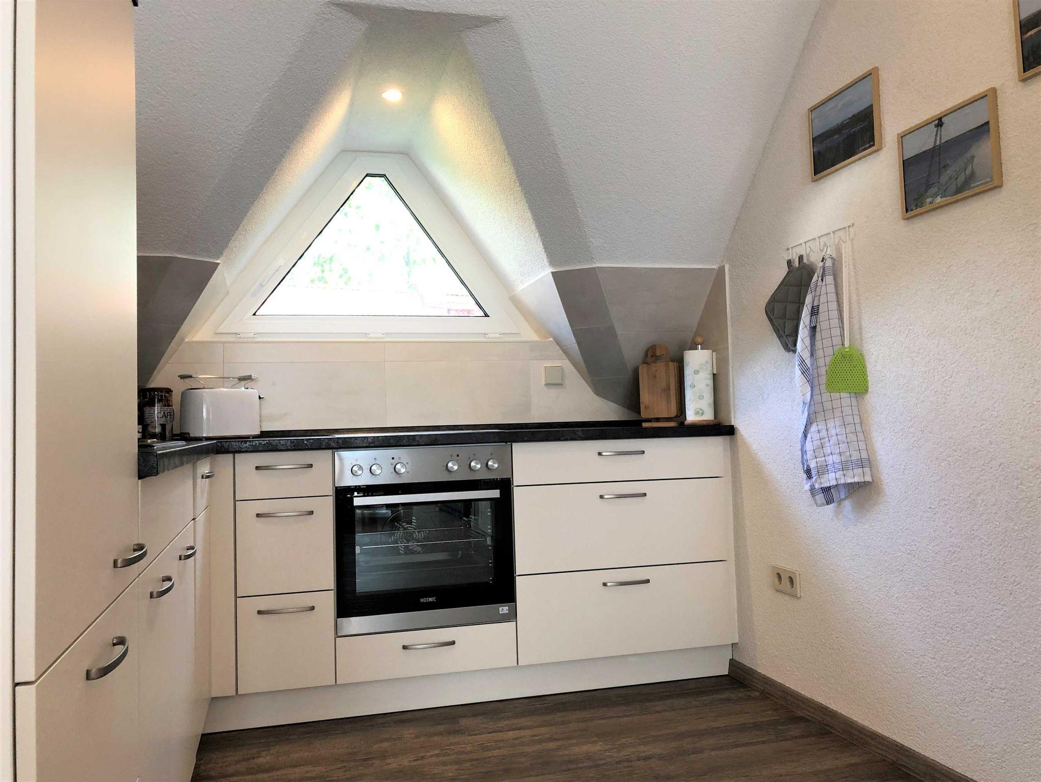 In der Ferienwohnung findet der Gast einen separaten Schlafraum, 1 kombinierten Wohn - Schlafraum mit TV, 1 Küche (komplett ausgestattet mit Backofen, Elektoherd, Geschirrspüler und Kühlschrank sowie Kaffemaschine, Wasserkocher und Toaster), die offen zum Wohnraum ist und ein Bad mit Badewanne und DU/WC.