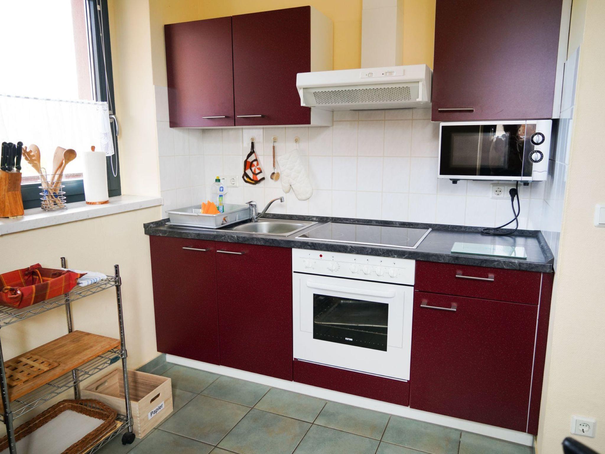 Das 2- Raum - Appartement mit ca. 60m² in der Herberge zum Steiger Franz (Nichtraucherappartement) verfügt über eine Wohnfläche von 60m². Der Eingangsbereich, Küche und Bad sind gefliest. Die Küche ist ausgestattet mit modernem Küchenmobilar, einem 4 - Platten - Cerankochfeld, Kühlschrank, Toaster , Wasserkocher, Kaffeemaschine, diverse Töpfe und Geschirr sowie einer Grundausstattung an Küchengewürzen. Reinigungsmittel und Geschirrtuch sind ebenfalls vorhanden. Im Laubengang kann man gemütlich frühstücken.