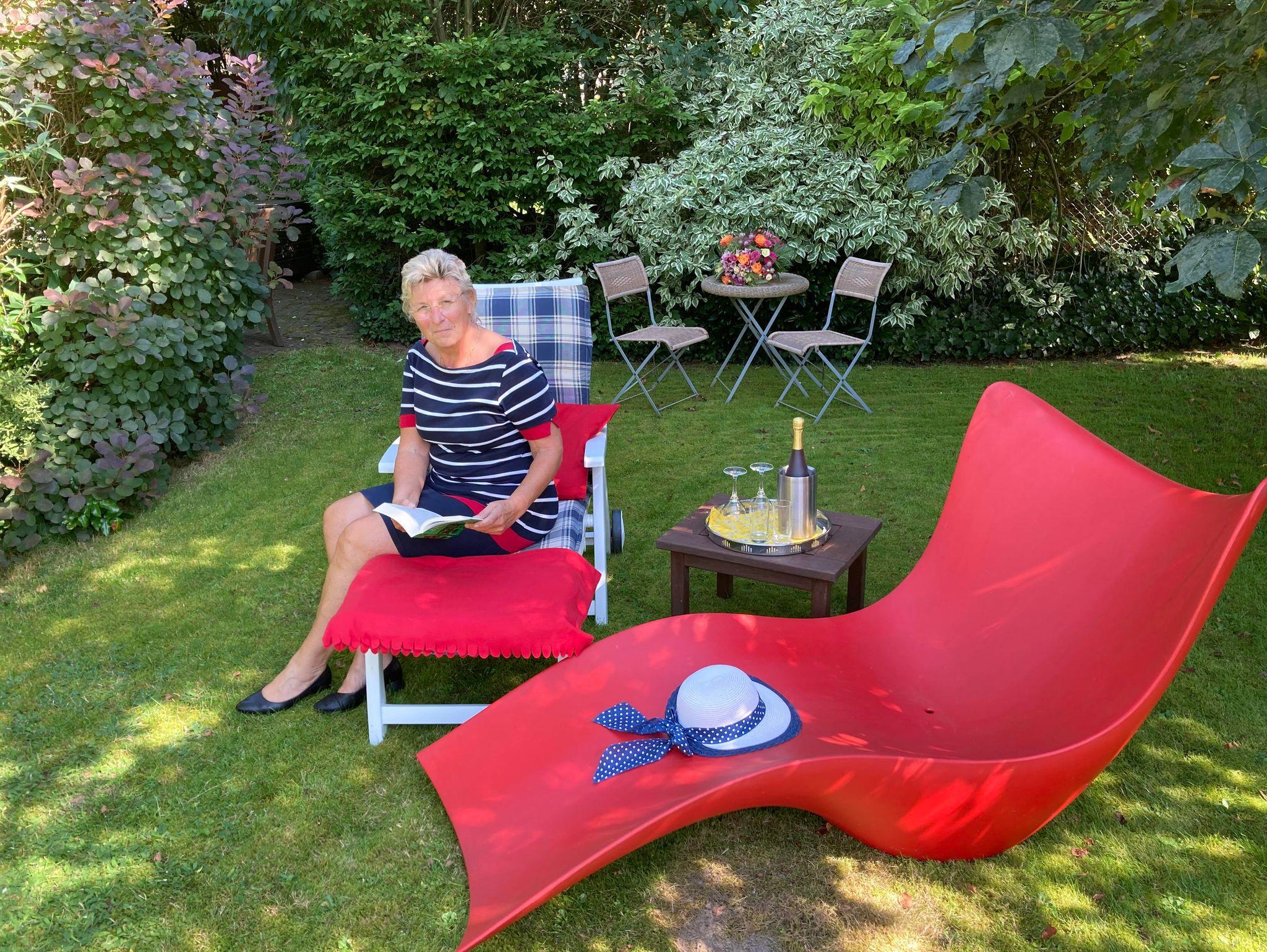 Der große Garten lädt mit Sitzgruppen und Liegen zum Lesen, Sonnenbaden oder Picknicken ein.