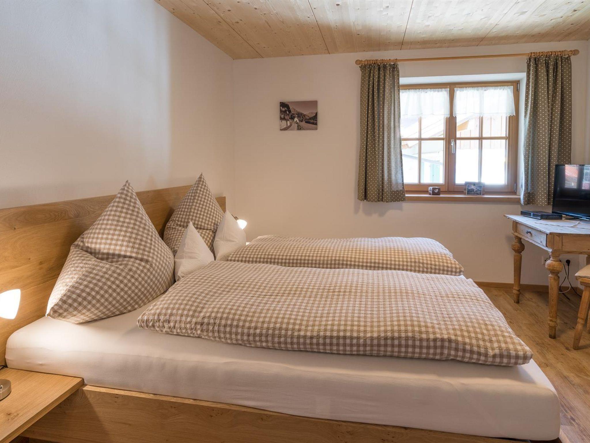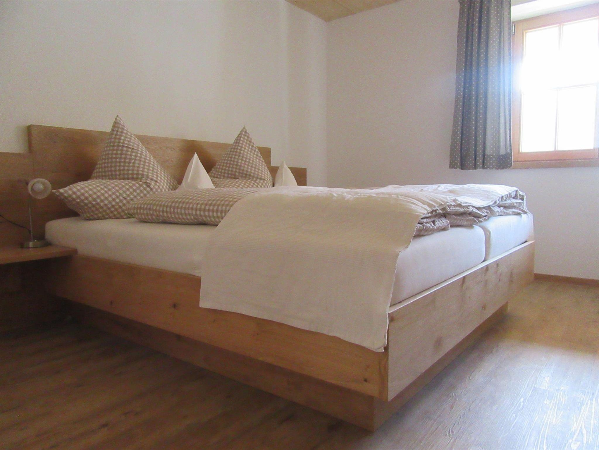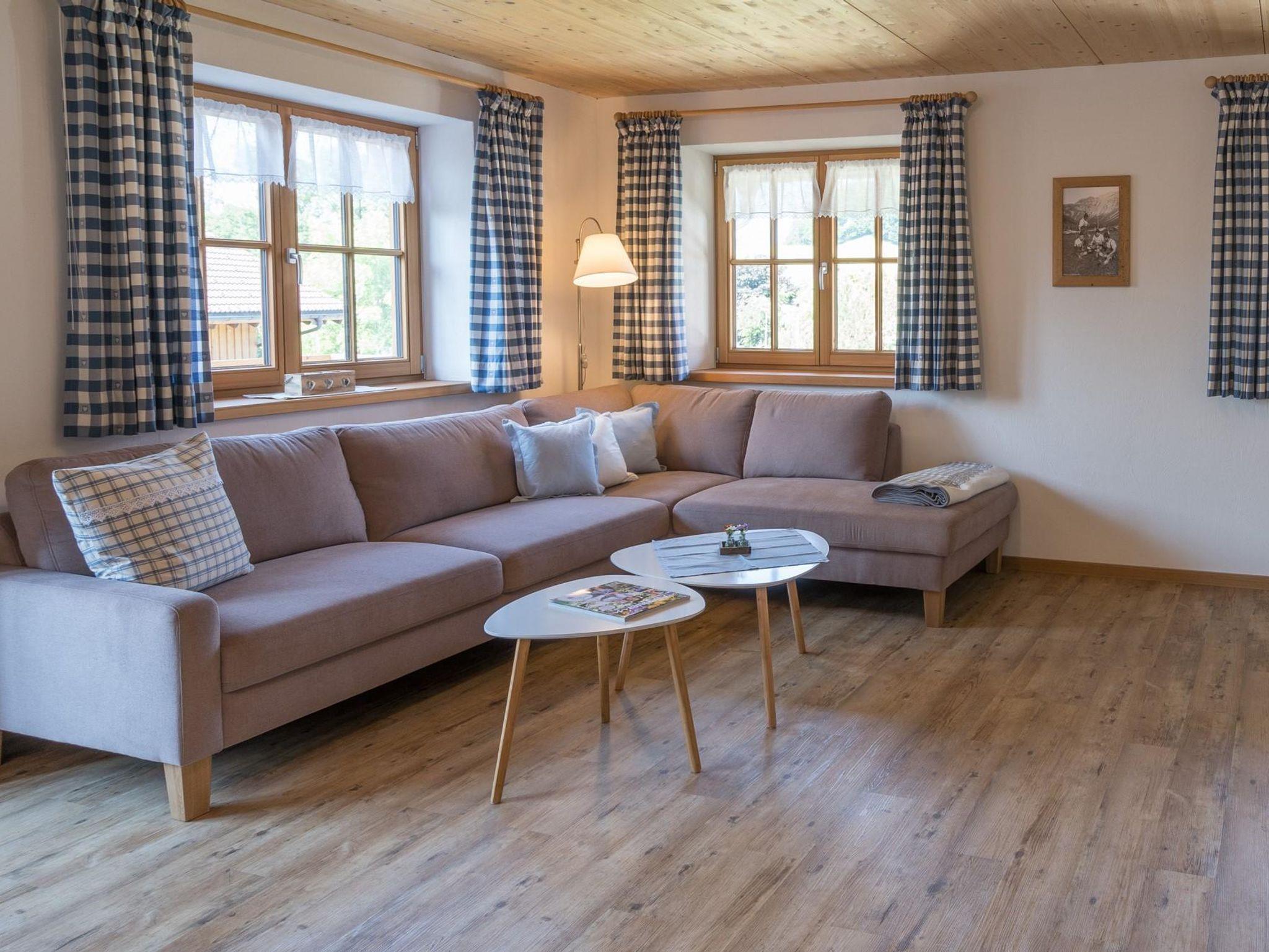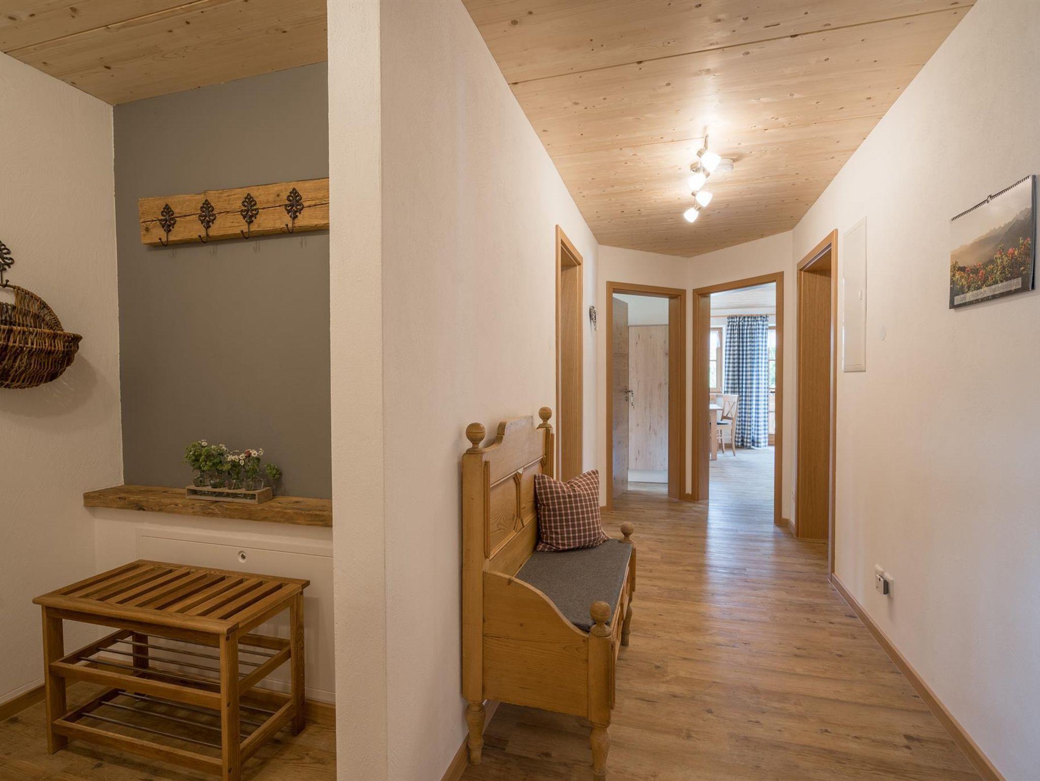 Die Ferienwohnung liegt im ersten Obergeschoss. Auf 98m2 befinden sich 2 Schlafzimmer (mit 2 und 3 Betten), ein großes Badezimmer mit Waschbecken, Toilette, Dusche und Badewanne und ein separates WC. Unsere Küche ist ausgestattet mit einer Spülmaschine, Elektroherd und Backofen. Kleingeräte wie Wasserkocher, Eierkocher, Toaster und Kaffeemaschine sind vorhanden. Der gemütliche Essbereich lädt zu einem ausgiebigen Frühstück, Mittag- oder Abendessen ein. Ein großes Sofa, TV und eine kleine Sitzgruppe finden Sie im Wohnzimmer. Von dort aus gelangen Sie auf den großen Südbalkon mit wunderbarem Bergblick auf das Rubihorn, die Hörnerkette und den Allgäuer Hauptkamm.