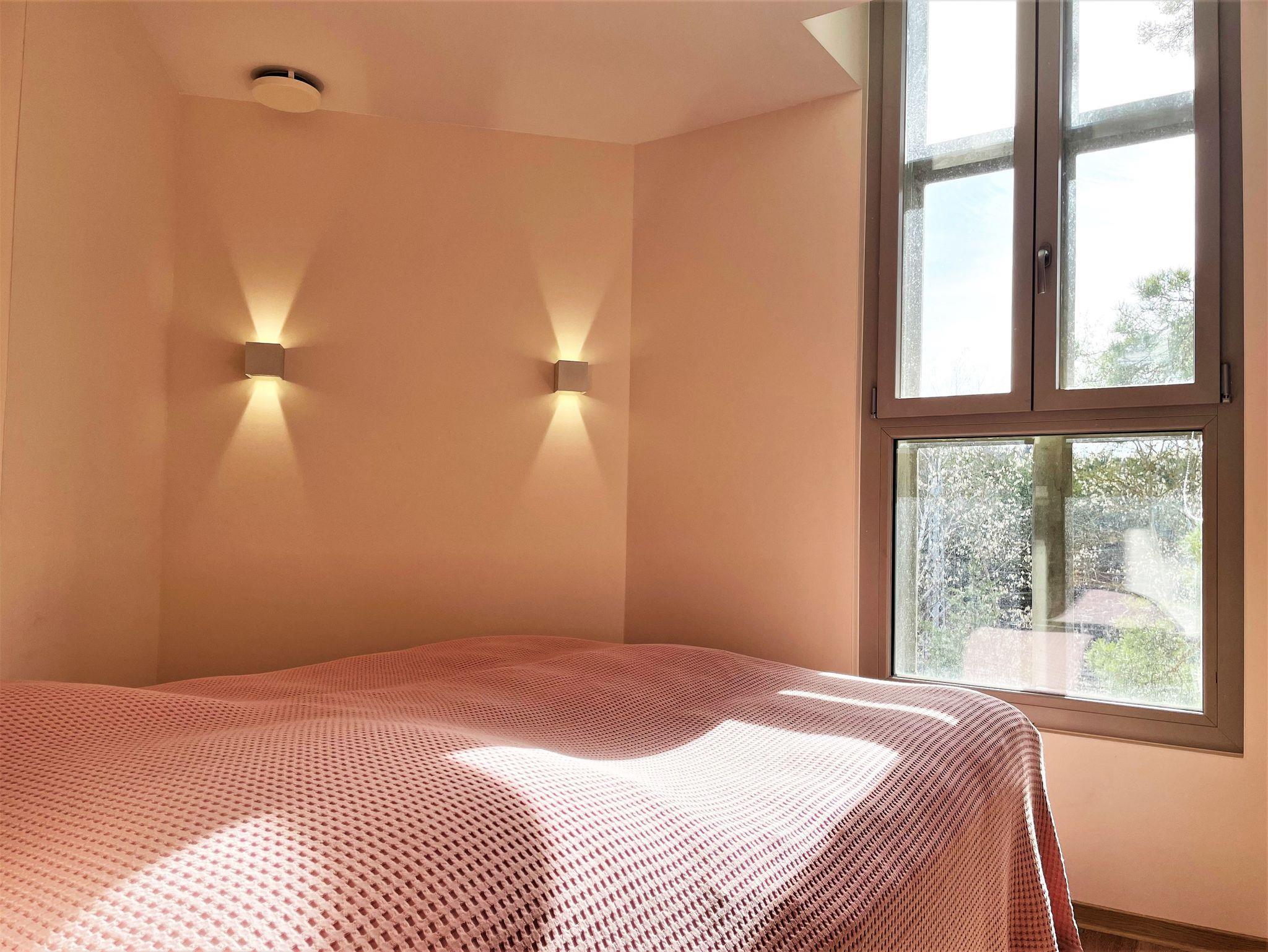 Weitere 2 Gäste bewohnen eine Ebene, die mit einem Doppelbett ausgestattet ist. Alle Wohneinheiten verfügen über geschmackvoll eingerichtete Bäder mit begehbarer Dusche, WC sowie ein Waschbecken mit Spiegel.
