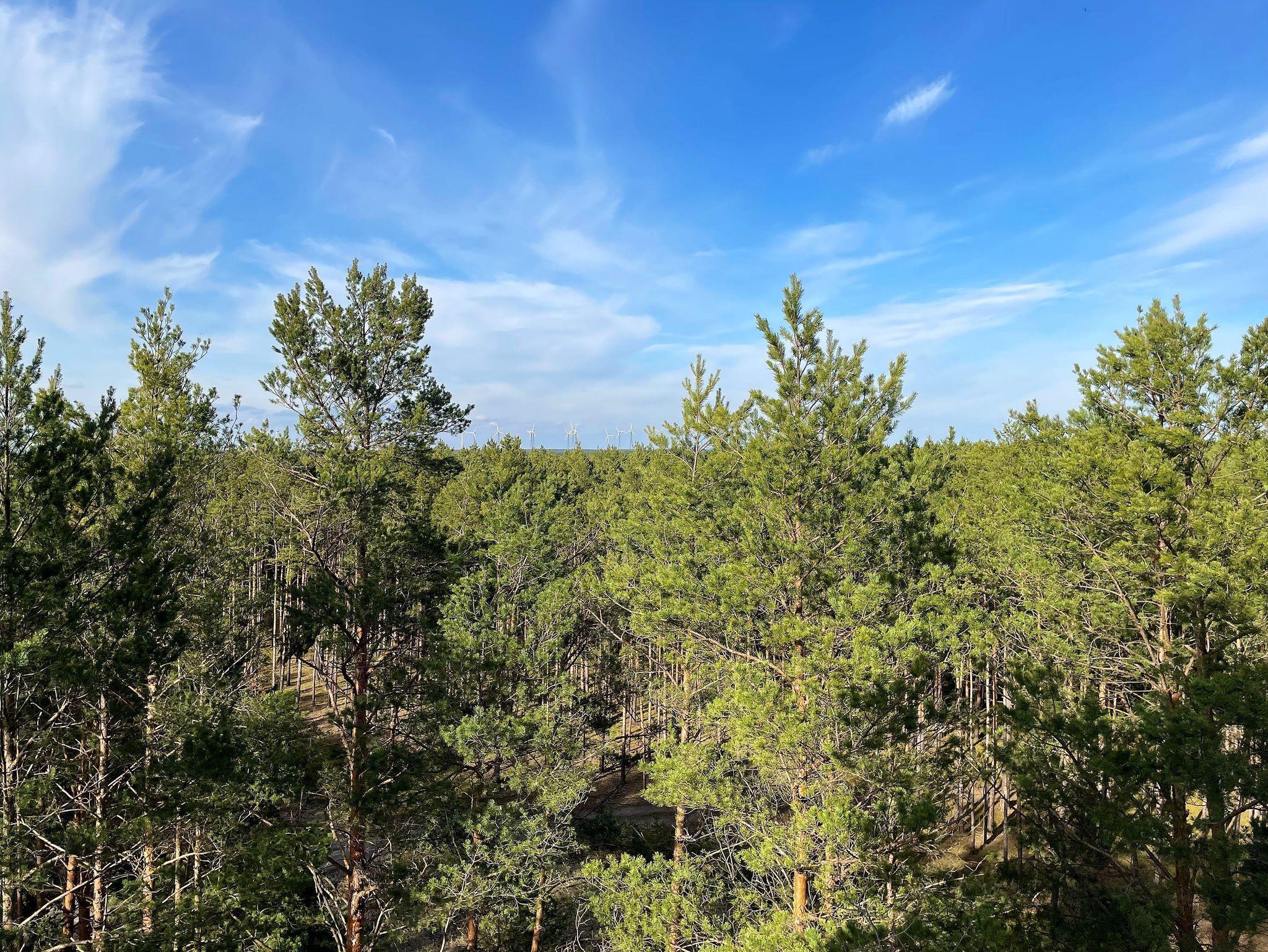 Die Terrasse befindet sich in luftiger Höhe, hier genießen Gäste einen weiten Blick ins Land, weit über den Wipfeln der Bäume. Ein Whirlpool, der in den Sommermonaten aufgestellt wird, macht den Aufenthalt an heißen Tagen zu einem ganz besonderen Erlebnis.