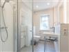 2. Badezimmer (Duschbad) mit bodengleicher Dusche, WC, Handtuchwärmer, Tageslicht und Kosmetikspiegel.