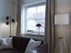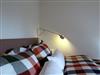 Die Wohnung verfügt über zwei Schlafzimmer in der oberen Etage. Das größere Zimmer hat ein Boxspringbett (160 x 200), das kleinere ein Einzelbett (90 x 200). Dazwischen finden Sie das Bad mit Dusche und Waschmaschine.