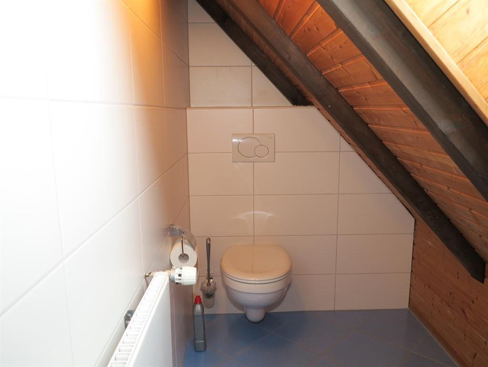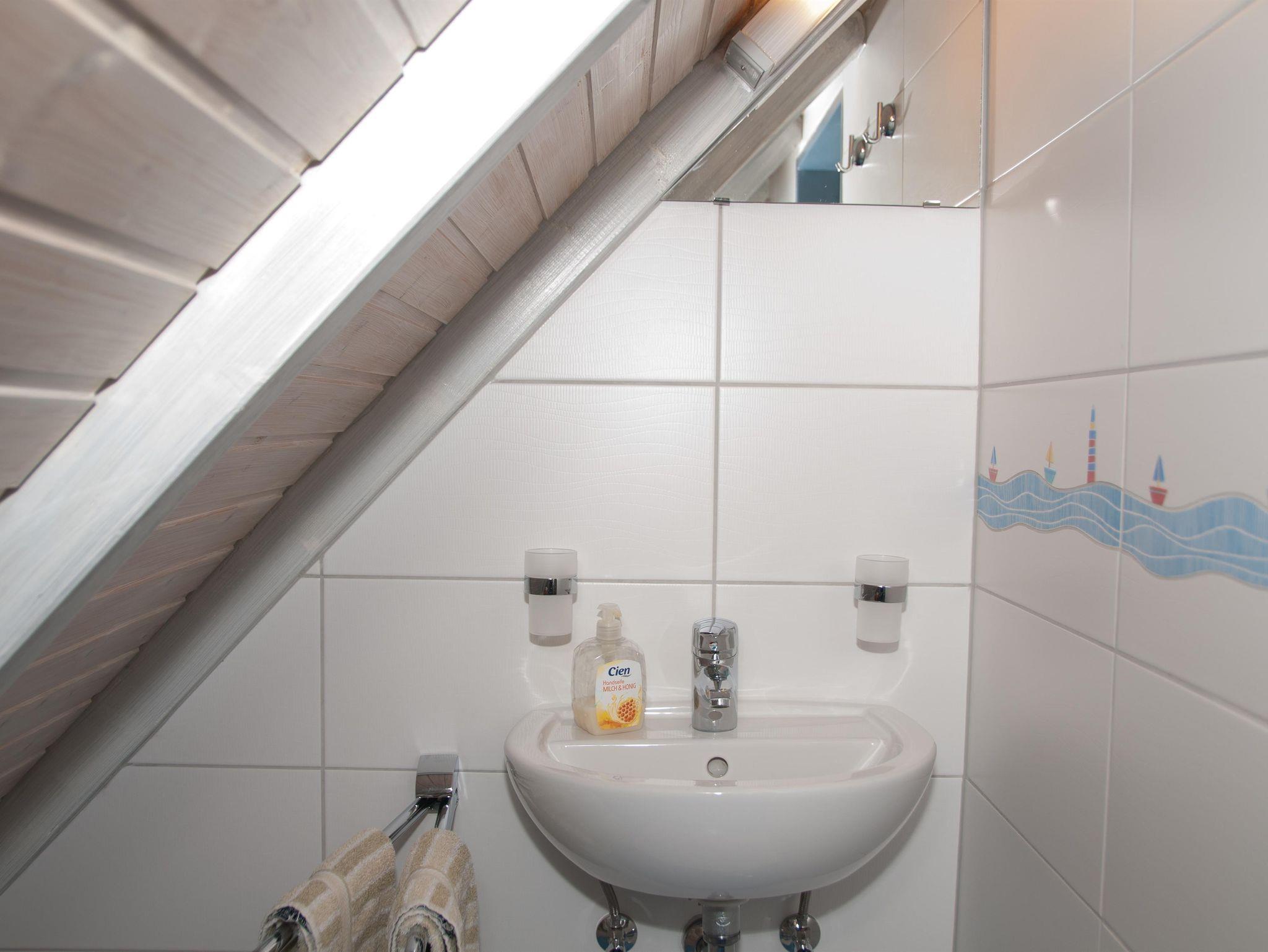 Im Dachgeschoss befindet sich ein zusätzlicher Waschraum mit WC, die Stehhöhe eignet sich aber nur für Kinder.