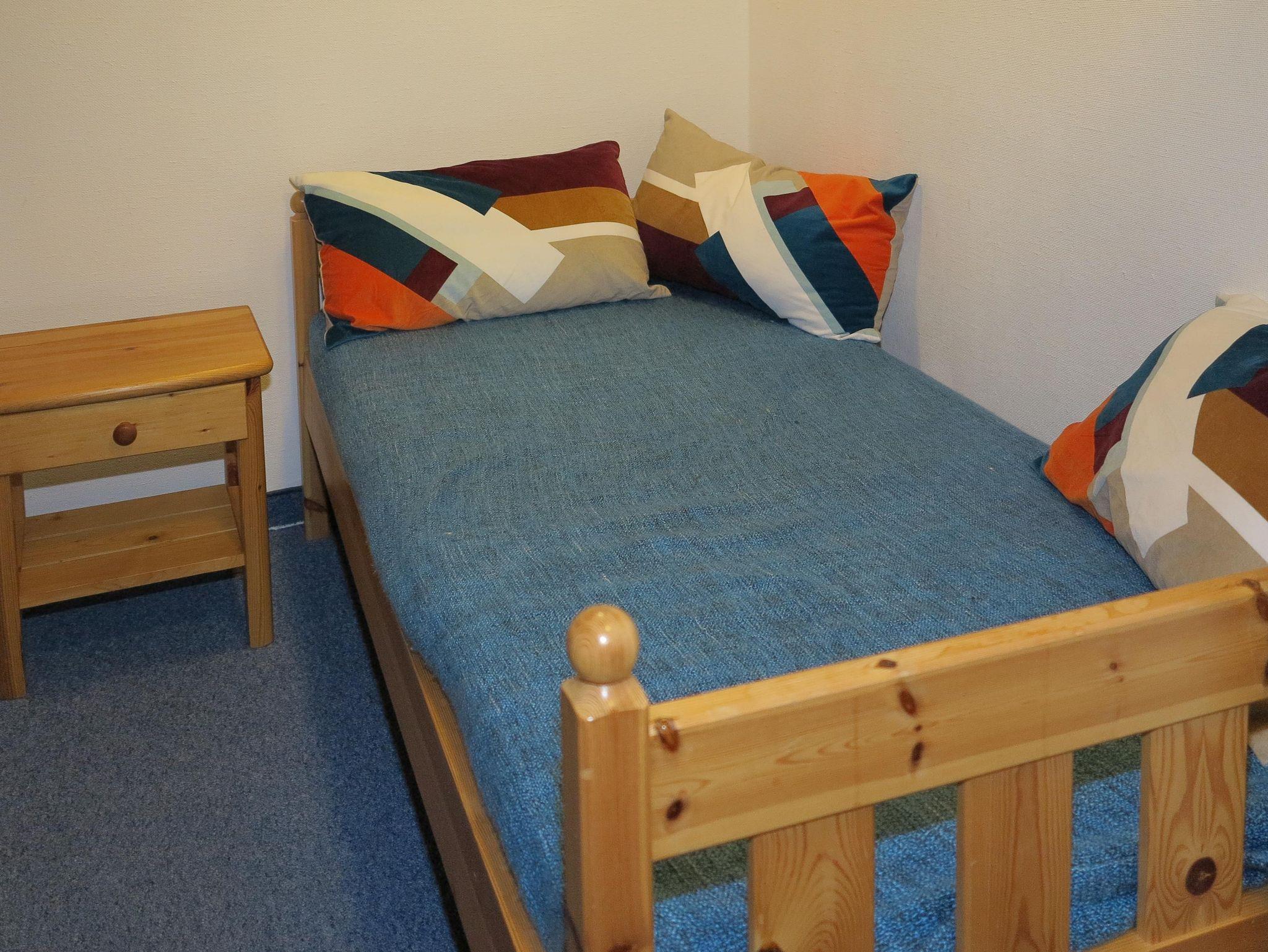 Der Schlafraum im Obergeschoss wartet mit einem Doppelbett mit 2 Matratzen, (Liegefläche 170 x 200 cm) auf Sie. Hier würde auch ein Kinderbett mit 70 x 140 cm auf Vorbestellung seinen Platz finden.