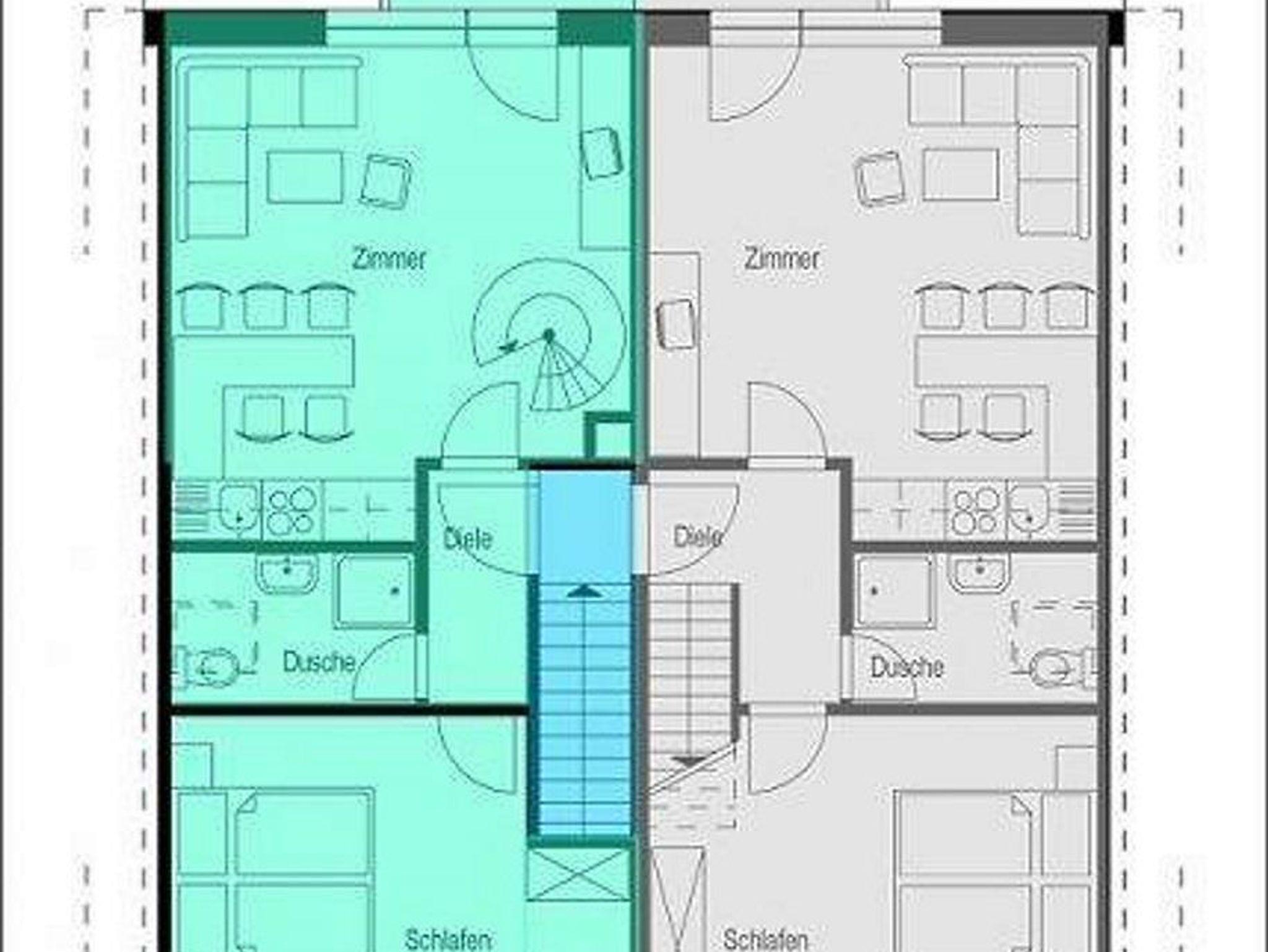 Die gemütliche und helle Wohnung für bis zu 2 Pers. liegt auf 2 Etagen im Obergeschoss und Dachgeschoss.