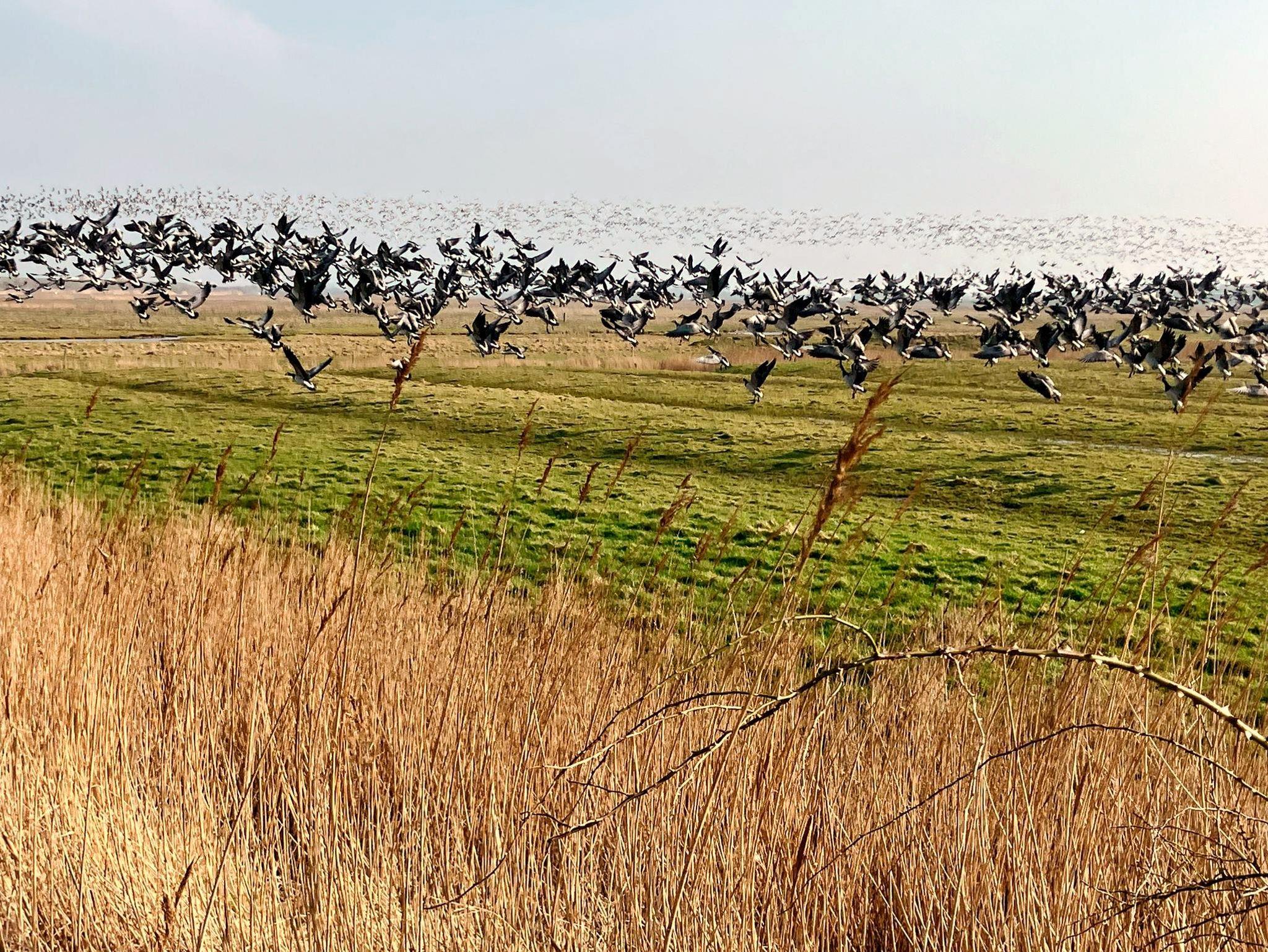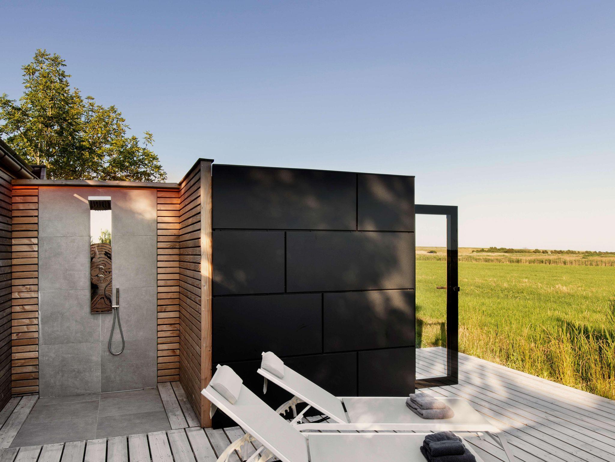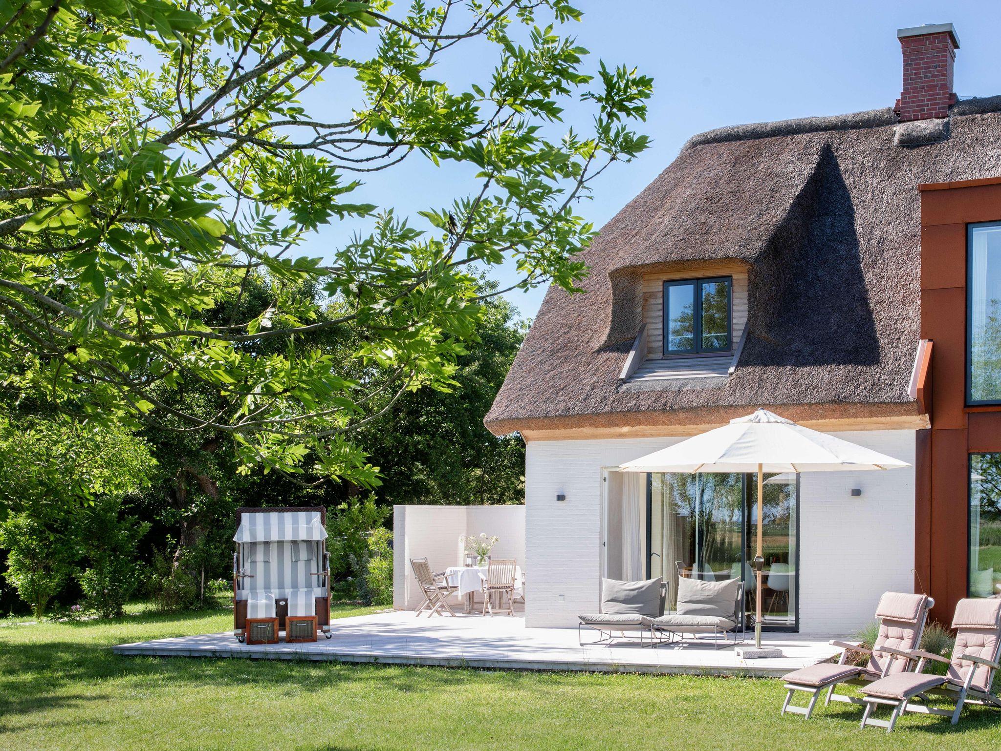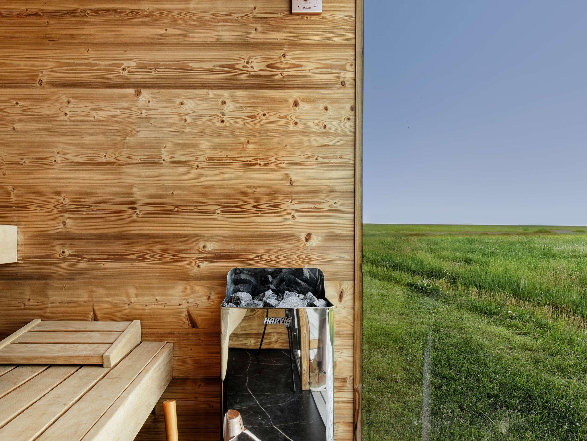 Der großzügige Wohnraum öffnet sich nach Süden und Westen mit bodentiefen Fenster- und Türelementen zu einer weiträumigen Holzterrasse und schafft so einen fließenden Übergang zwischen Innen und Außen, zur Weite der Wiesenlandschaft Eiderstedts. Das norderdiekhuus mit der großen, sehr gut ausgestattete Küche, mit dem breiten Sofa am Fenster mit Weitblick sowie den drei sehr gemütlichen Schlafzimmer im Obergeschoss, eins davon mit Bad en suite, bietet Platz für bis zu sechs Gäste. Die Ferienwohnung ist komplett mit Fussbodenheizung ausgestattet.