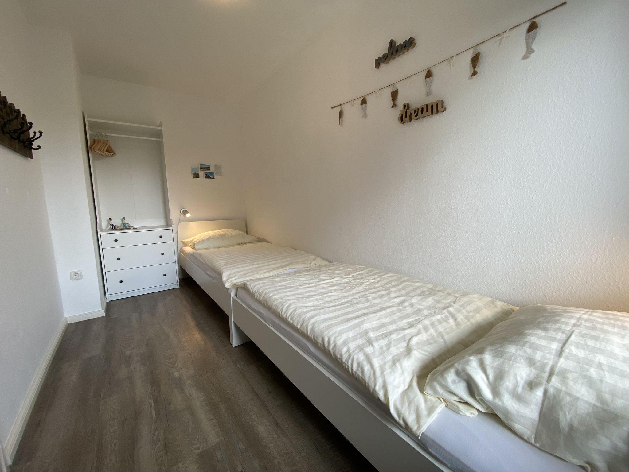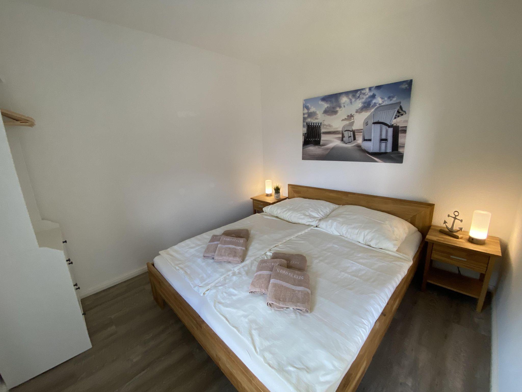 Die perfekte Ferienwohnung für Ihren Urlaub in SPO. Unsere gemütlich ausgestattete Ferienwohnung im Erdgeschoß bietet mit 63 m² Platz für bis zu 4 Personen.Sie verfügt über 2 getrennte Schlafzimmer mit 4 Betten (1 Doppelbett und 2 Einzelbetten). Die Ferienwohnung NORDSEELIG ist gut ausgestattet mit Geschirrspüler, Herd/Backofen, Terrasse, kostenlosem W-Lan, PKW Stellplatz und Fahrradstellplatz direkt neben dem Hauseingang. Ein Kinderhochstuhl und ein Kinderbett sind ebenfalls vorhanden. Die Lage der Wohnung im Ortsteil Dorf ist zentral, nahe dem Marktplatz, und dennoch ruhig, in einer Seitenstraße.