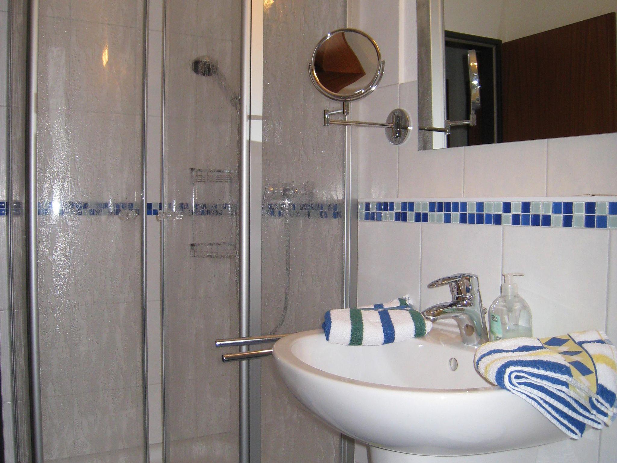 Dusche/WC mit Fön. Bettwäsche und Handtücher sind ebenso im Preis enthalten.