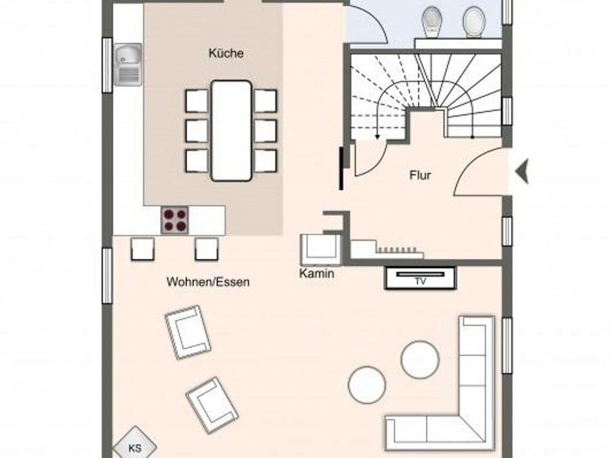 Außerdem ist im Obergeschoss noch ein weiteres Gäste-WC.