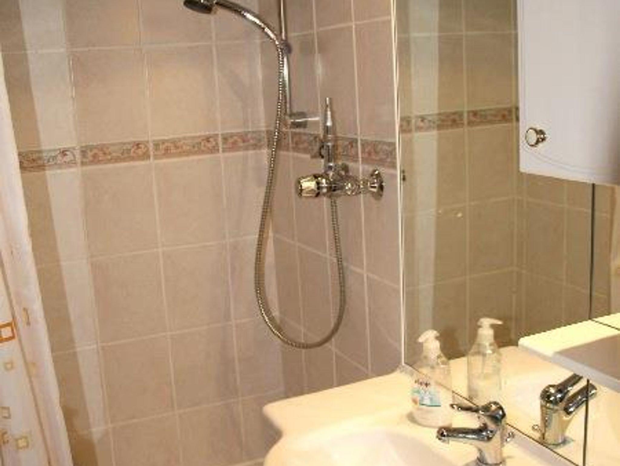 Schlafzimmer mit Doppelbett, auch einzelnd stellbar mit Nachtschränke, Einbaukleiderschrank, Duschbad mit WC, Fön.