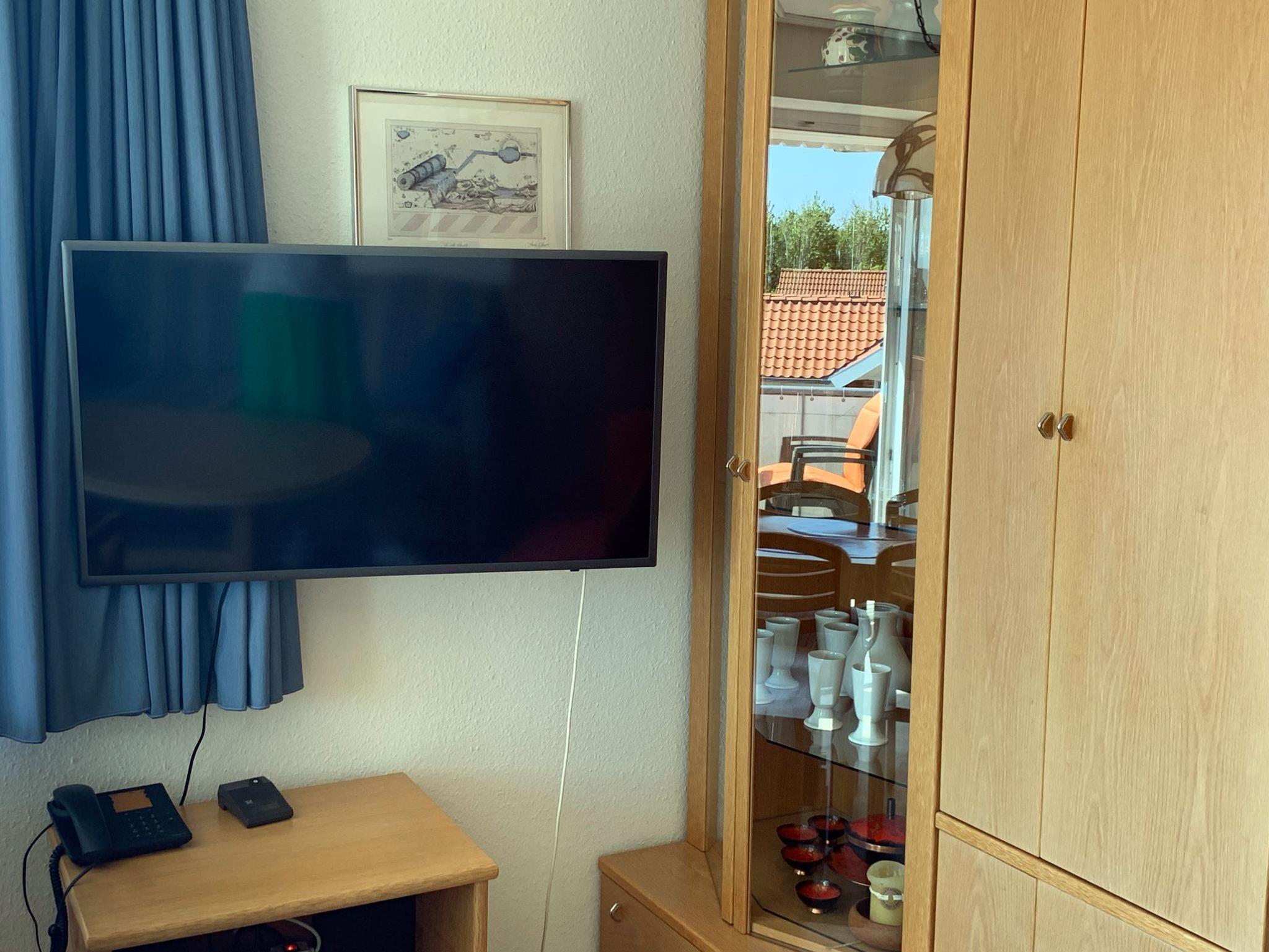WohnzimmerSchlafcouch, Couchtisch, Bettwäschetruhe, Tischlampe, Nachtspeicherofen, Esstisch, 4 Stühle, TV-Tisch, Kabel-TV, Telefon, Stereoanlage mit CD-Player, Vitrinenschrank, Schrank