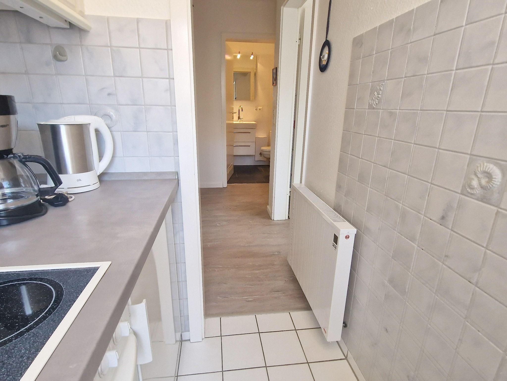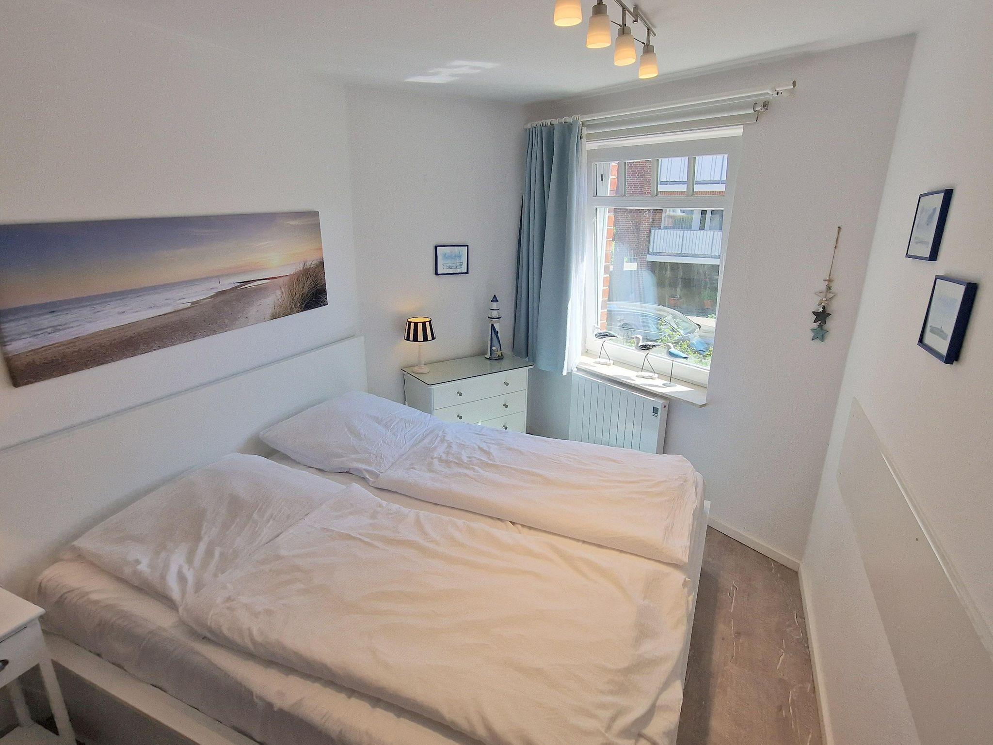 Meerblick für 4, das bietet die sehr gemütliche 2-Zimmer-Ferienwohnung Hauke-Haien Nr. 18 vom großen, sonnigen Süd-West-Balkon im 4.OG. Nachts können Sie sich auf der modernen Schlafcouch im Wohnzimmer oder im Doppelbett im Schlafzimmer erholen. In der Küche finden Sie einen 4-Plattenherd und eine Spülmaschine. Das modernisierte Bad ist schön hell gefliest.